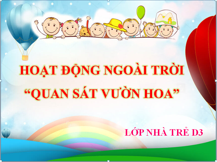 Hoạt động ngoài trời có rất nhiều hoạt động bổ ích cho trẻ được khám phá, tìm tòi… Như hoạt động quan sát vườn hoa là một trong những hoạt động mà giúp cho trẻ hiểu biết, khám phá được thêm rất nhiều kiến thức: Như biết phát âm tên các loài hoa, lá, thân cây, biết chăm sóc bảo vệ chúng.