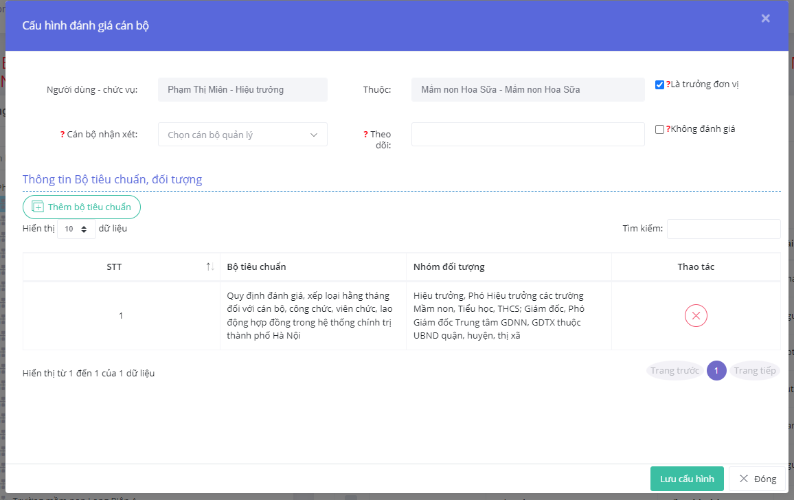 1- Gán bộ tiêu chí cho CBGVNV để đánh giá