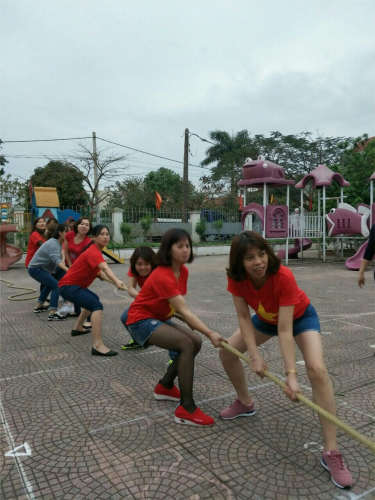 Vào hồi 17.30 phút, BCH công đoàn trường mầm non Giang Biên đã tổ chức cho các cán bộ, giáo viên, nhân viên của trường tham gia kéo co chào mừng ngày Quốc tế phụ nữ mùng 8/3. Đây là một trong những hoạt động được duy trì thường xuyên vào mỗi dịp 8/3 nhằm tạo không khí vui tươi, phấn khởi cho các công đoàn viên. Tham gia thi kéo co gồm có 4 đội chơi. Kết quả: Đội 3 dành giải nhất, đội 2 giải nhì, đội 1 giải ba và đội 4 dành giải tư.