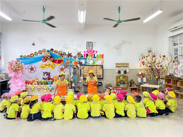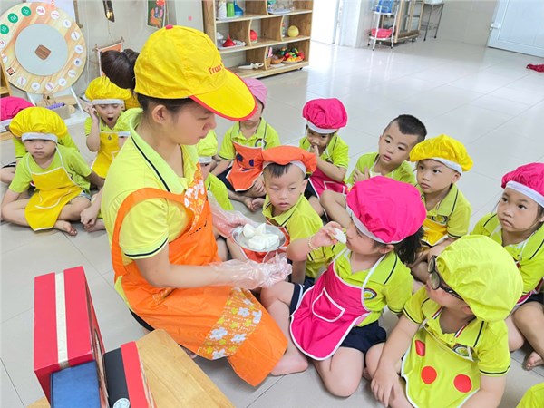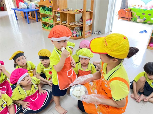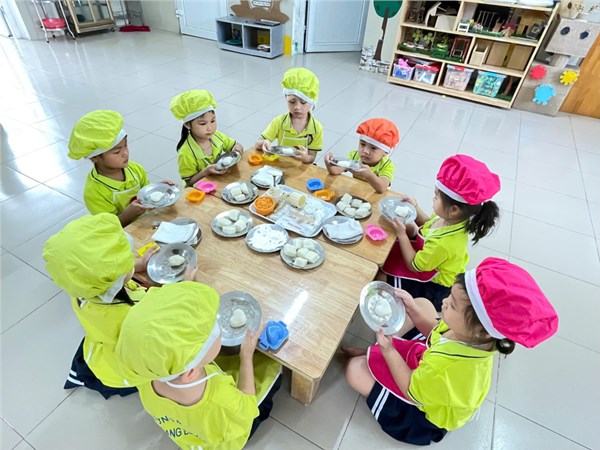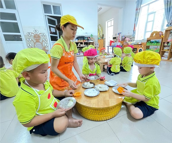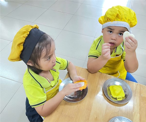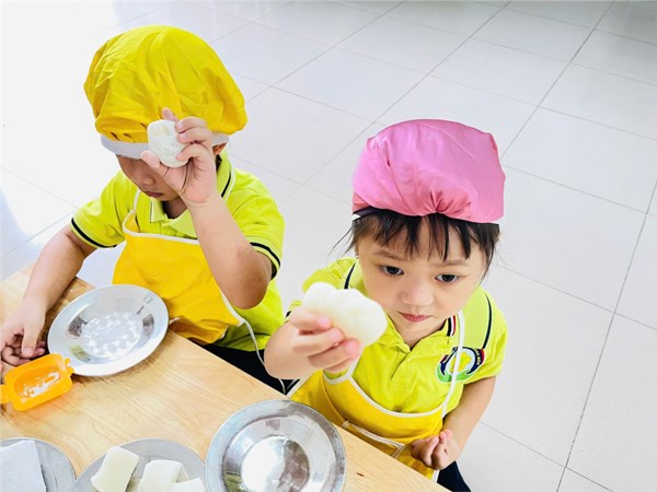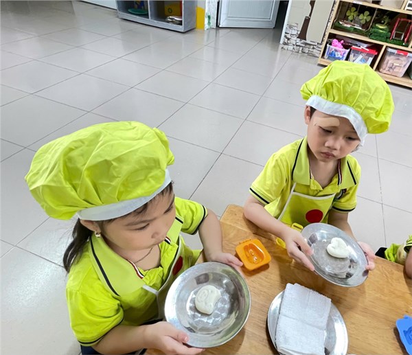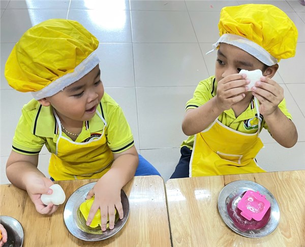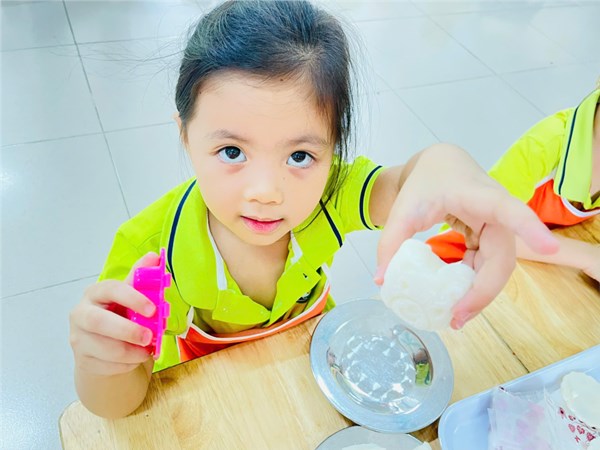 Tập ảnh : Các bạn nhỏ lớp MGN B4 trải nghiệm làm bánh dẻo
