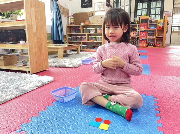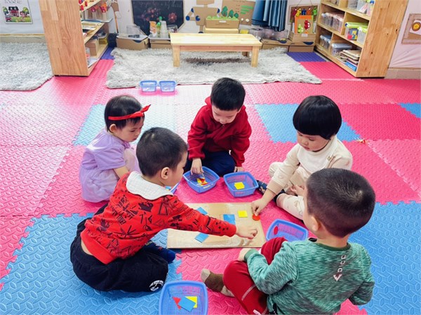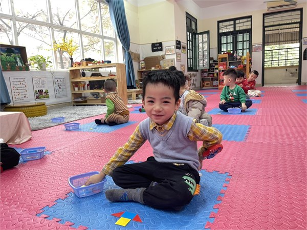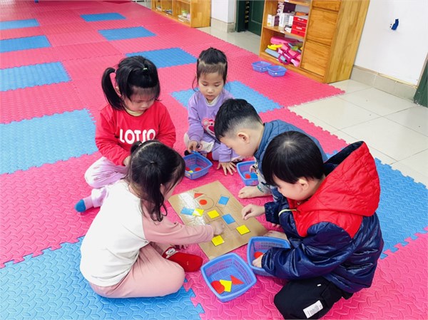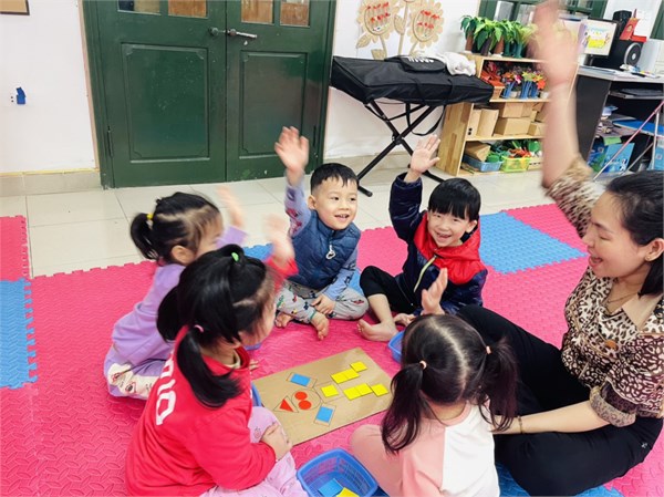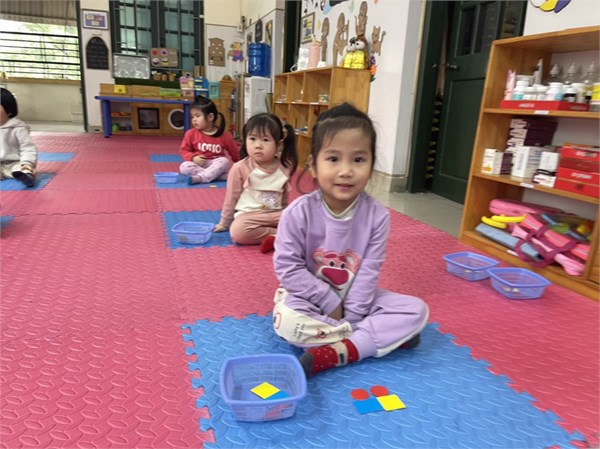 Tập ảnh : Các bé lớp C1 ôn 4 hình tròn, hình vuông, hình tam giác, hình chữ nhật