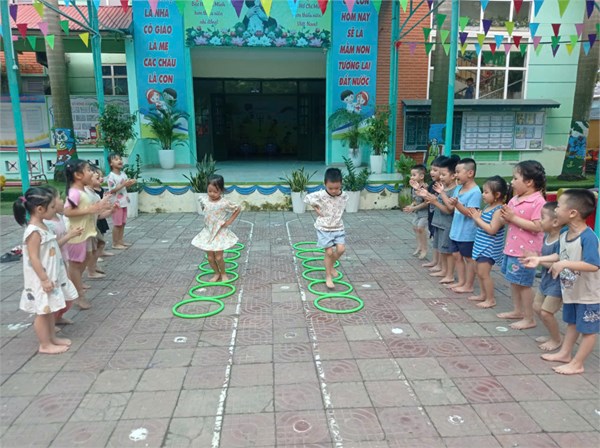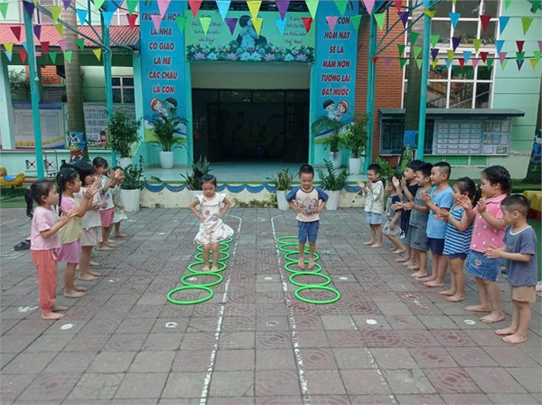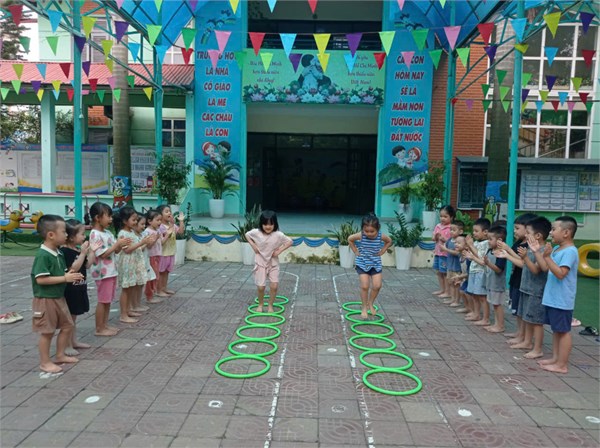 Tập ảnh : Các bé lớp MGL A1 tham gia trò chơi chơi " Bật liên tiếp qua 5 vòng"