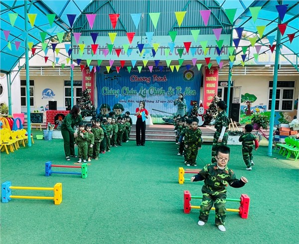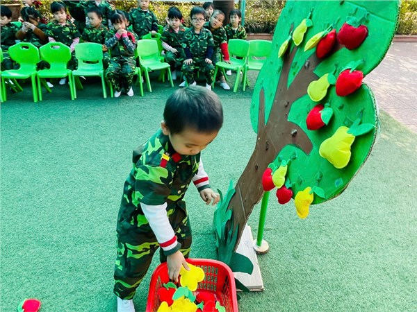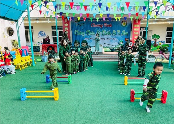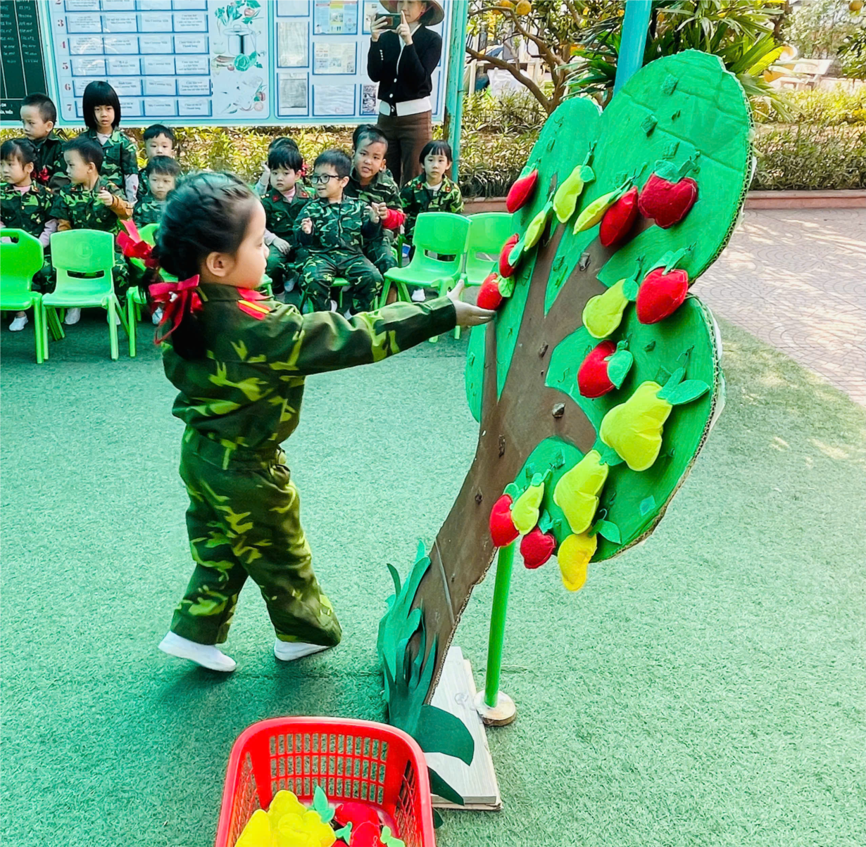 Tập ảnh : Các bé lớp MGN B4 thích thú tập làm chú bộ đội thông qua trò chơi "Bật qua chướng ngại vật - hái quả"! - Ảnh đẹp t12