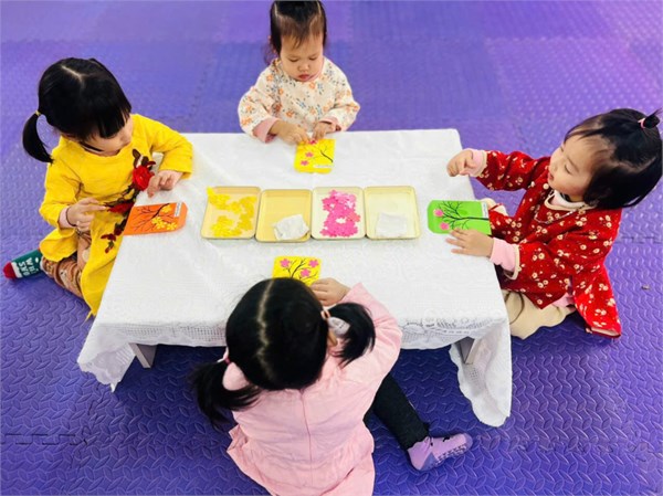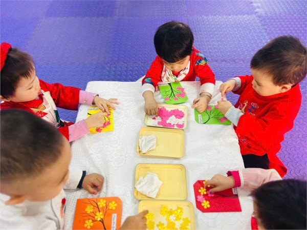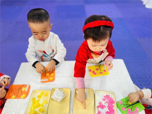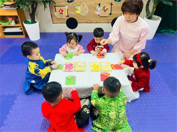 Tập ảnh : Các bé lớp NTD4 trang trí bao lì xì đón tết