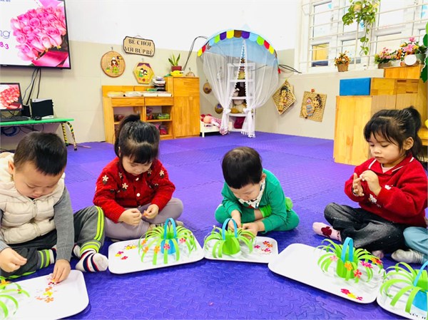 Tập ảnh : Các con lớp NTD3 làm giỏ hoa tặng mẹ nhân ngày 8/3