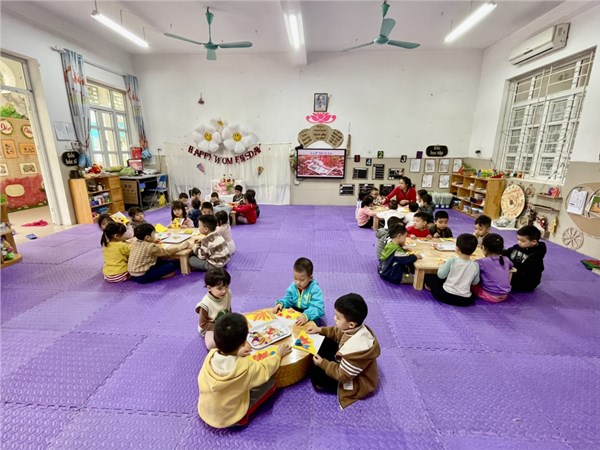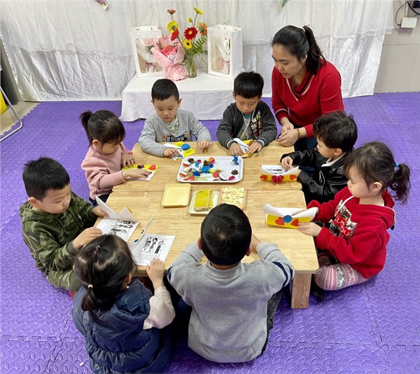 Tập ảnh : Cô và trò lớp MGN B4 " Làm bưu thiếp tặng bà, tặng mẹ" nhân ngày Quốc tế phụ nữ 8/3
