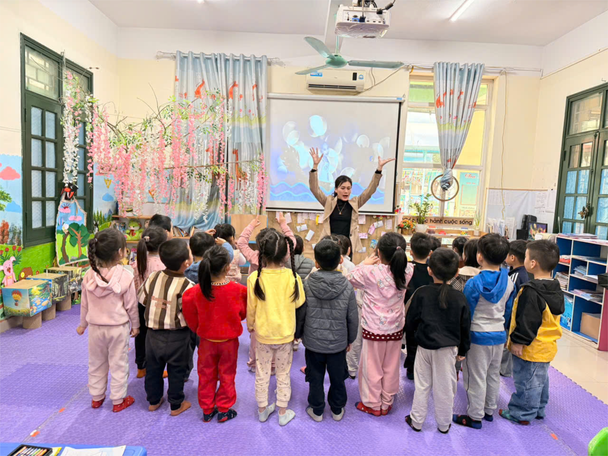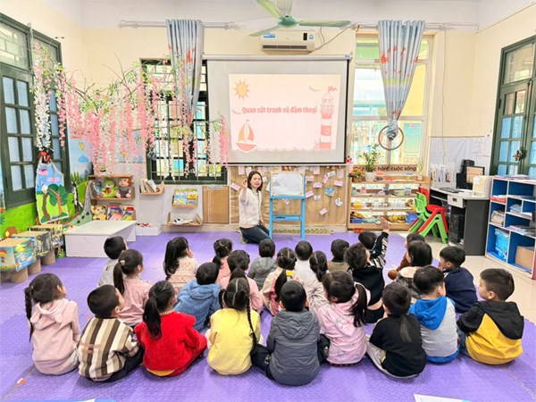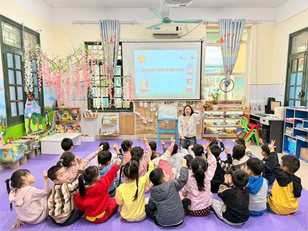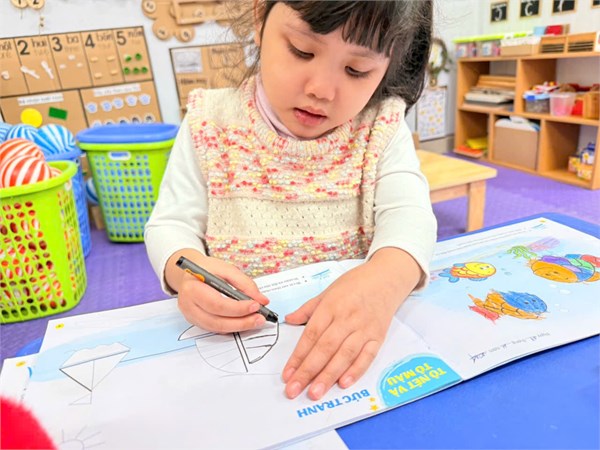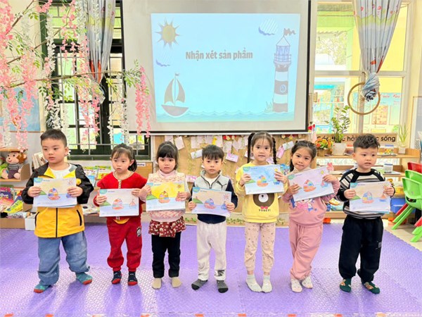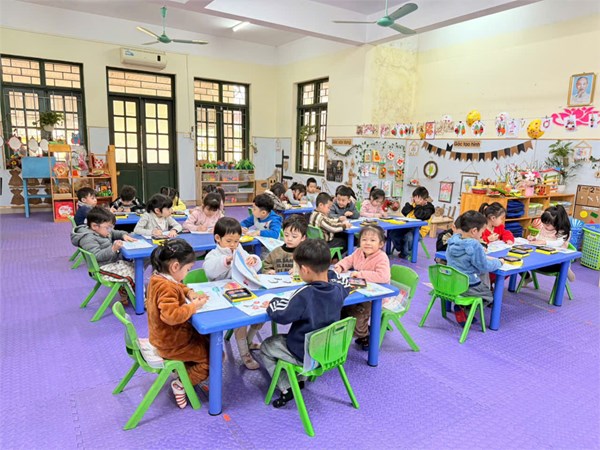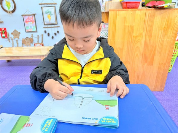 Tập ảnh : Cùng các con lớp MGN B2 tô nét chấm mờ và tô màu bức tranh