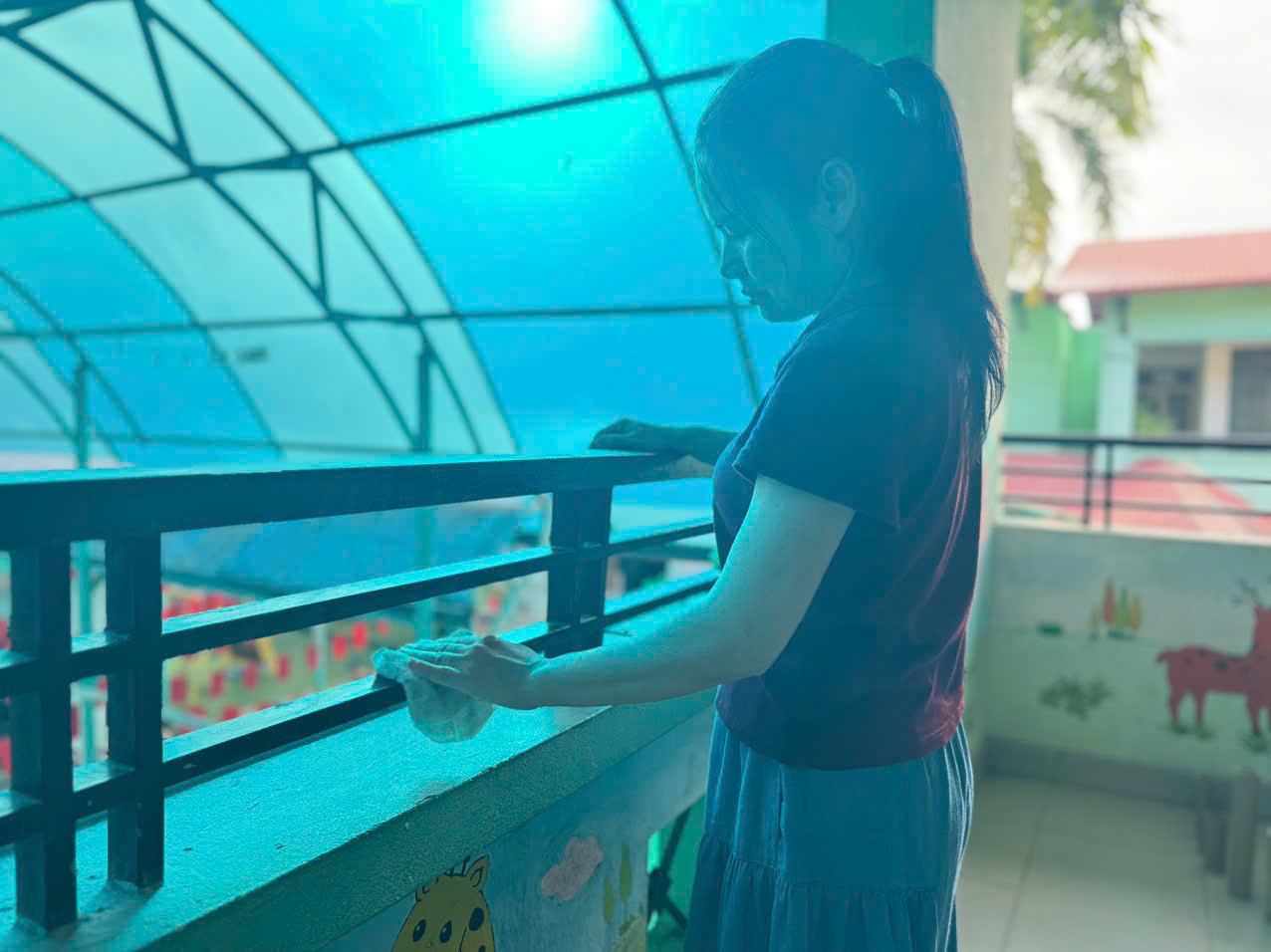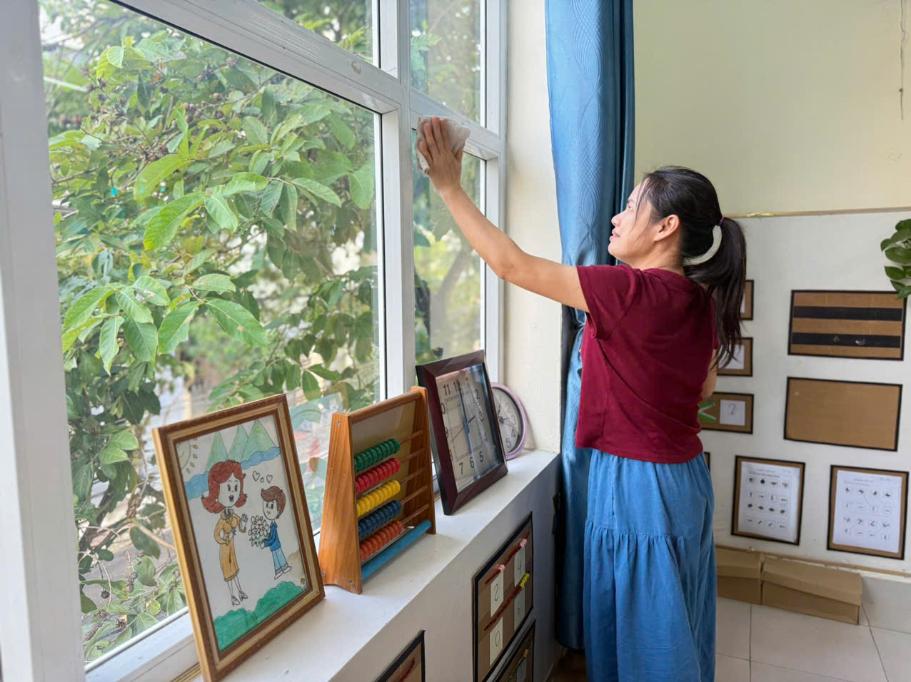 Các cô đã khẩn trương lau dọn, sắp xếp lại đồ dùng, vệ sinh đồ chơi và khuôn viên lớp học 🧸🍀. Nhờ sự chung tay, lớp học đã trở lại xanh – sạch – đẹp, sẵn sàng đón các con đến trường trong niềm vui và sự an toàn.
