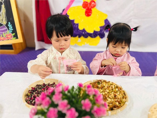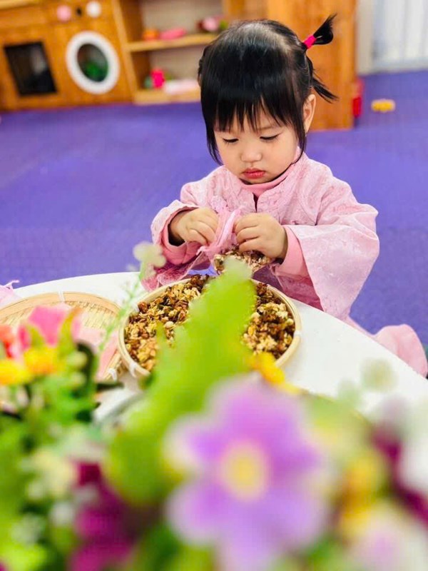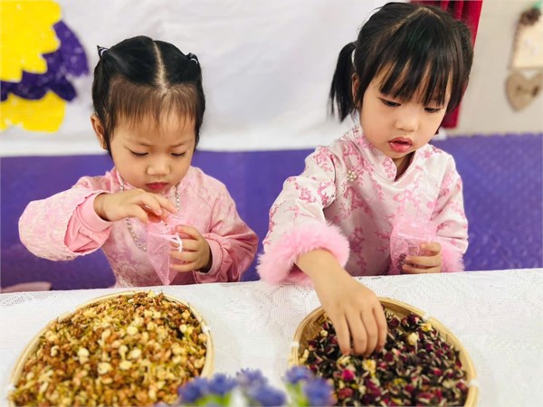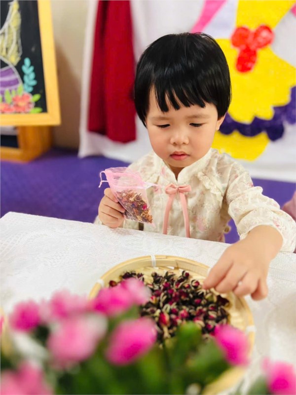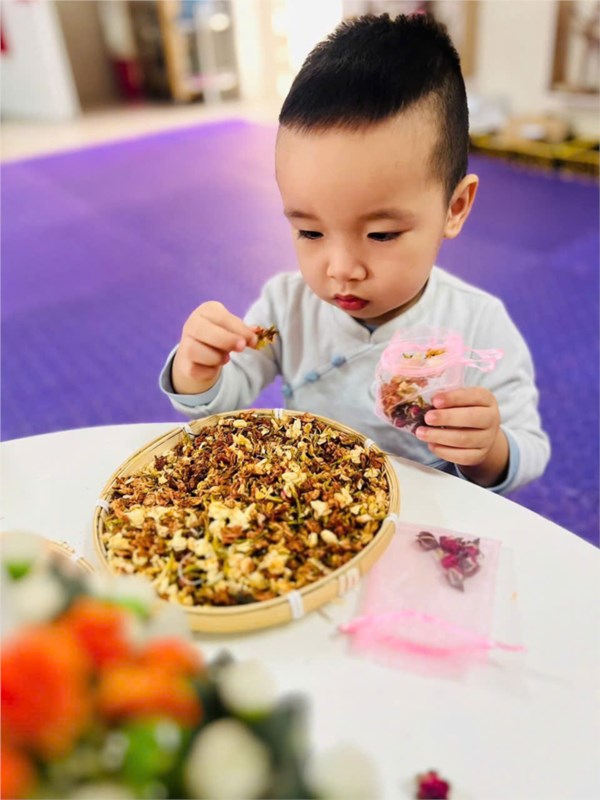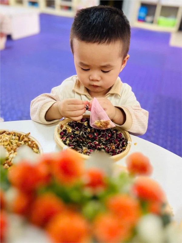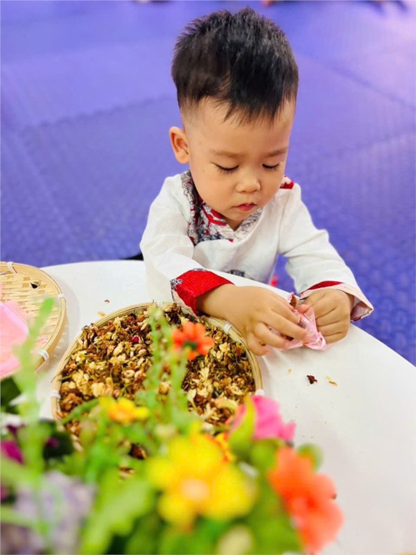Tập ảnh : Hình ảnh các bé lớp NTD2 trong giờ HĐTN "Làm túi thơm tặng mẹ"