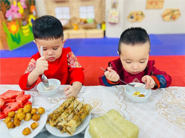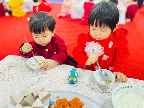 Tập ảnh : Hình ảnh các bé lớp NTD2 trong giờ HĐTN: "Mâm cơm đoàn viên- Tết sum vầy"