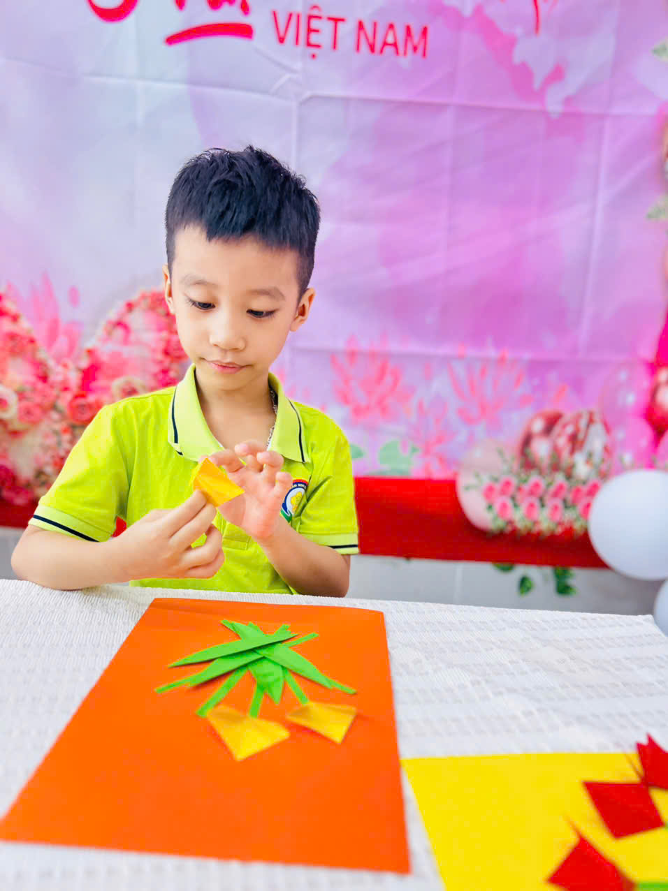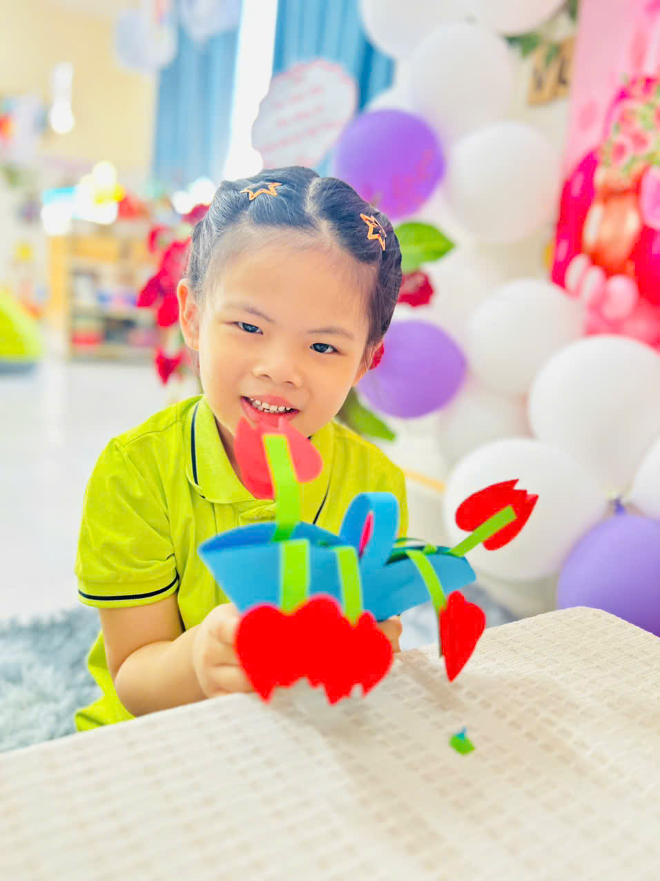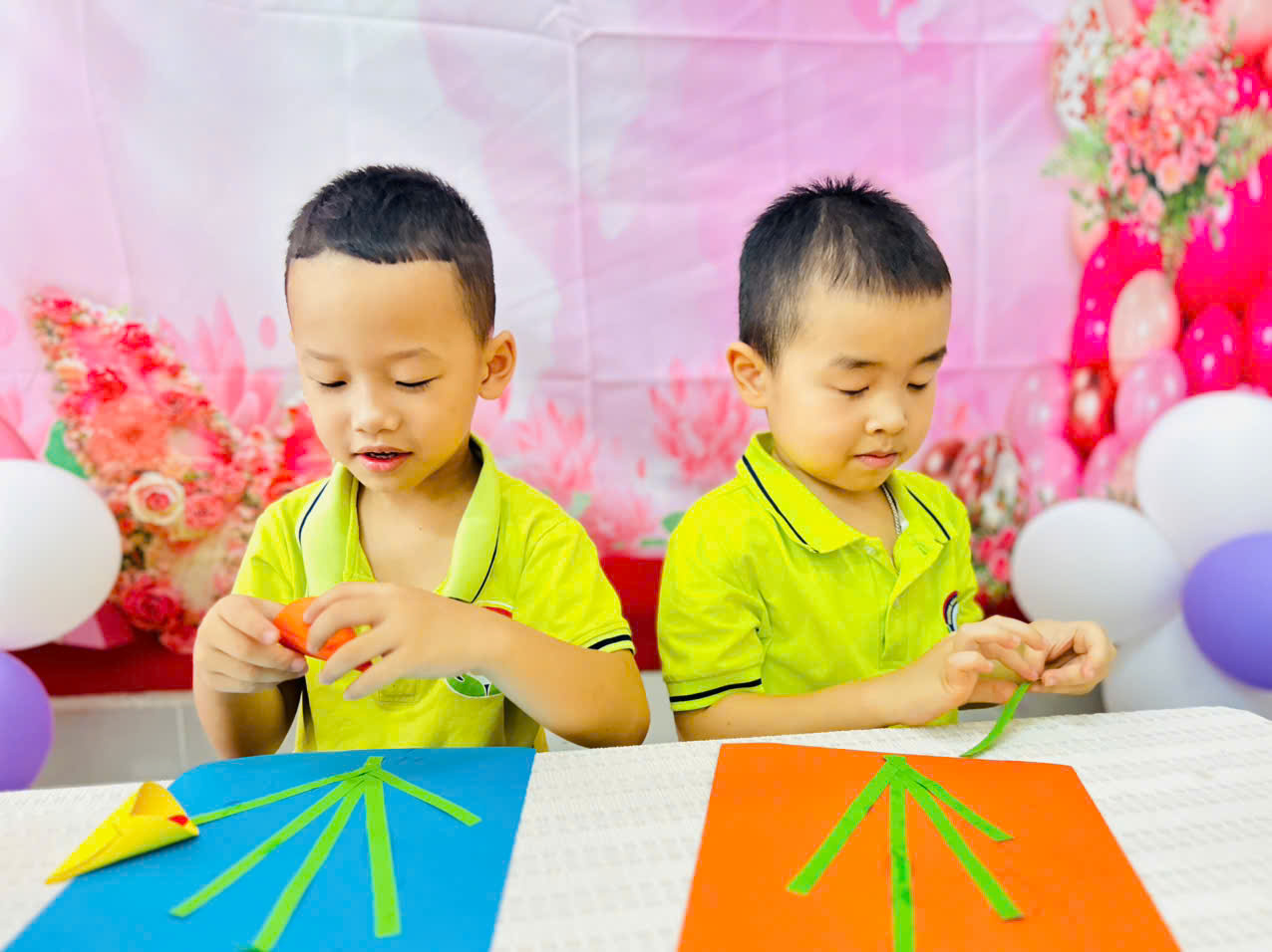 Với những tấm bìa màu rực rỡ, keo dán và đôi bàn tay nhỏ xinh, các bé đã sáng tạo nên những tấm thiệp xinh xắn, tràn đầy tình yêu thương. 🌈✂️🎨