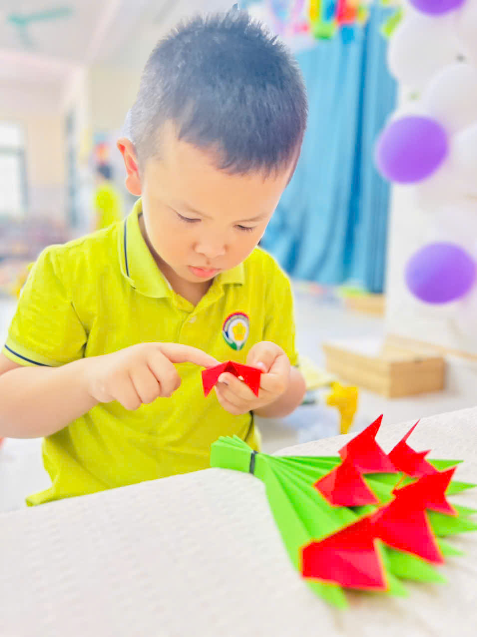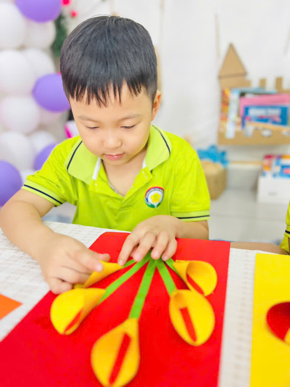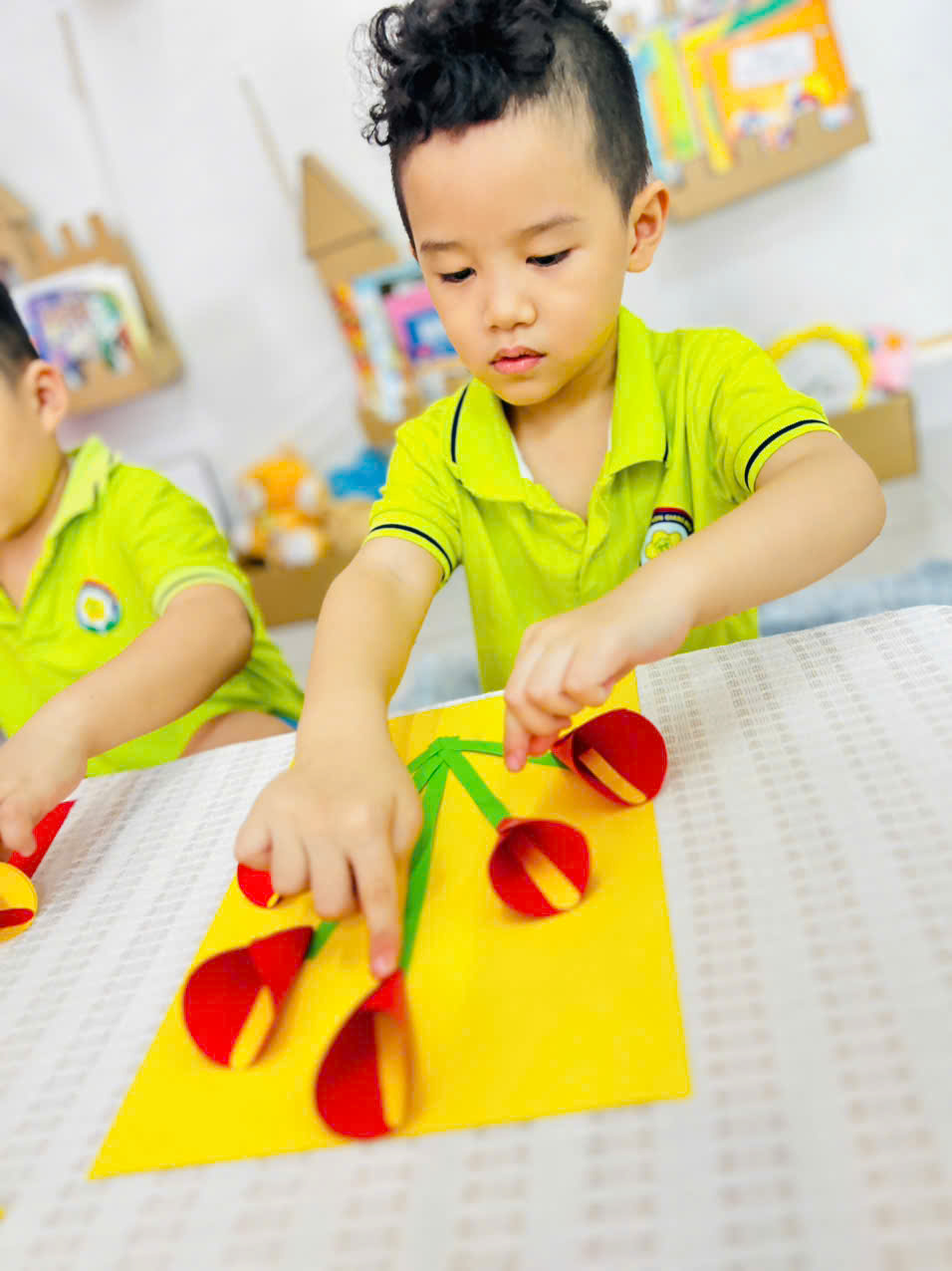Với những tấm bìa màu rực rỡ, keo dán và đôi bàn tay nhỏ xinh, các bé đã sáng tạo nên những tấm thiệp xinh xắn, tràn đầy tình yêu thương. 🌈✂️🎨