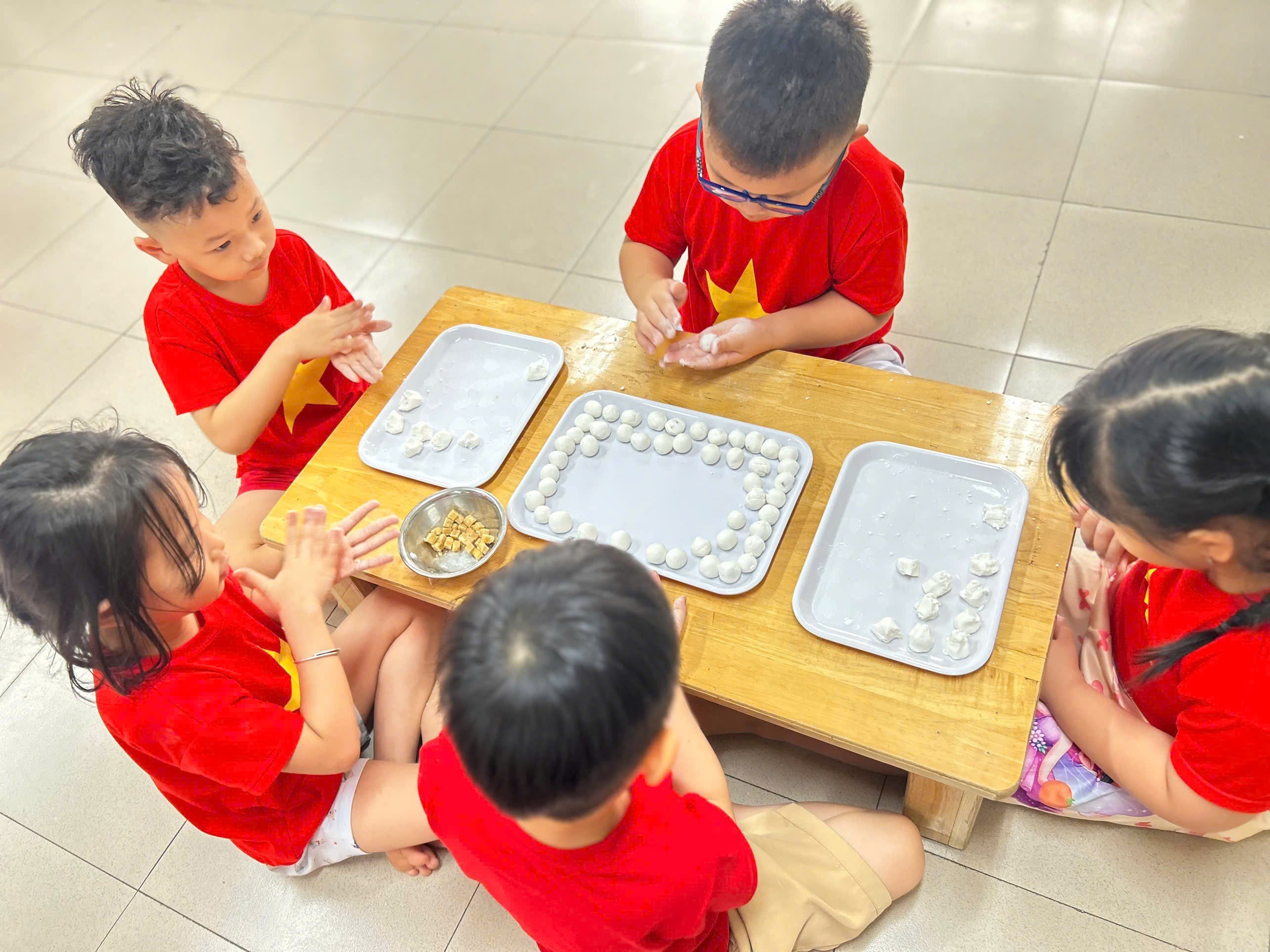 Hôm nay, các bé lớp A1 đã có một hoạt động trải nghiệm vô cùng thú vị: tự tay làm bánh trôi 🍡✨