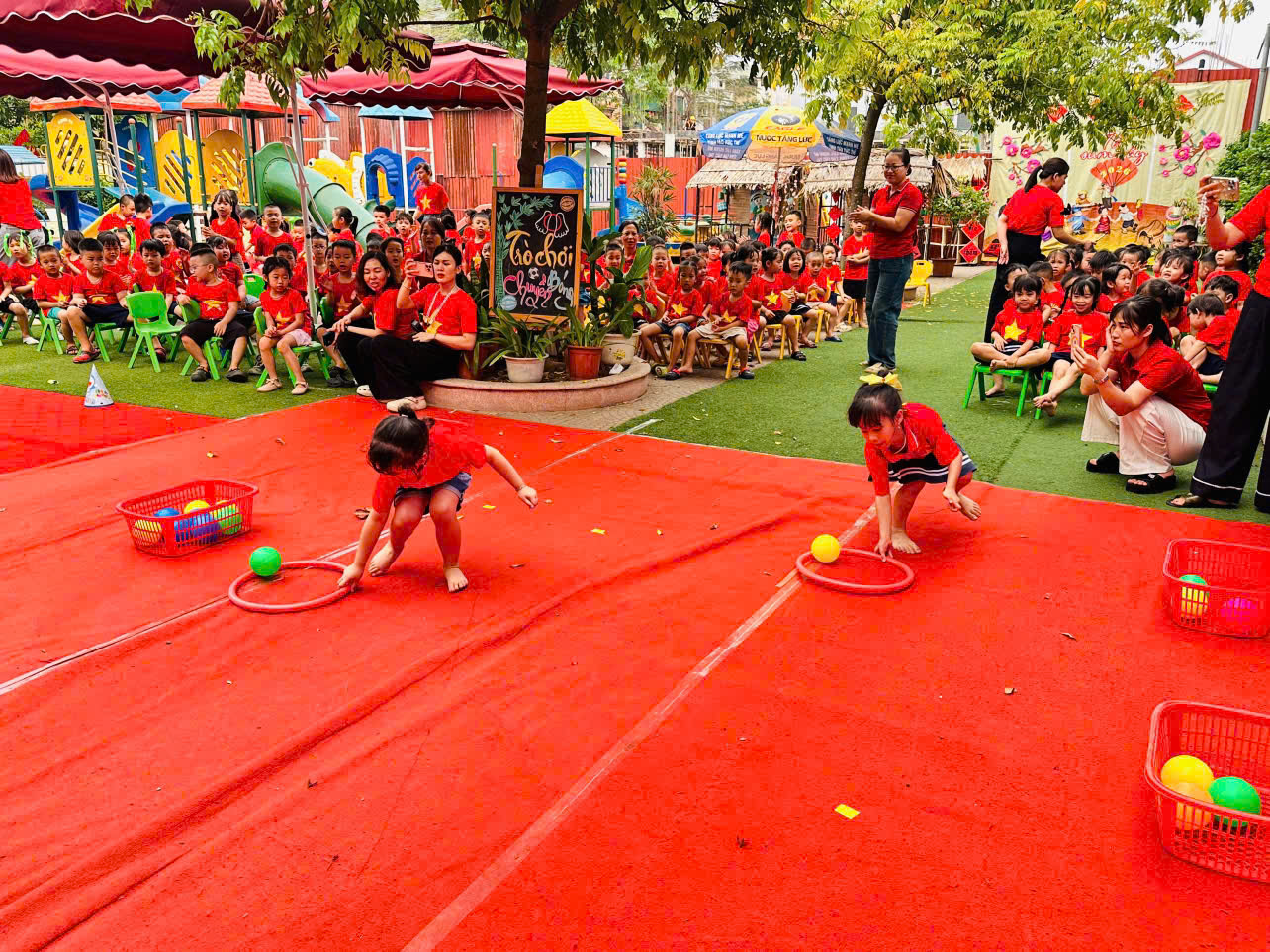 Các bé tham gia nhiệt tình vào các phần thi như: vận động theo nhạc 🎶, trò chơi thể chất 🤸♀️, và các hoạt động tập thể vui nhộn 👫. Không chỉ rèn luyện sức khỏe, các con còn thể hiện sự nhanh nhẹn, khéo léo và tinh thần đoàn kết 🌟