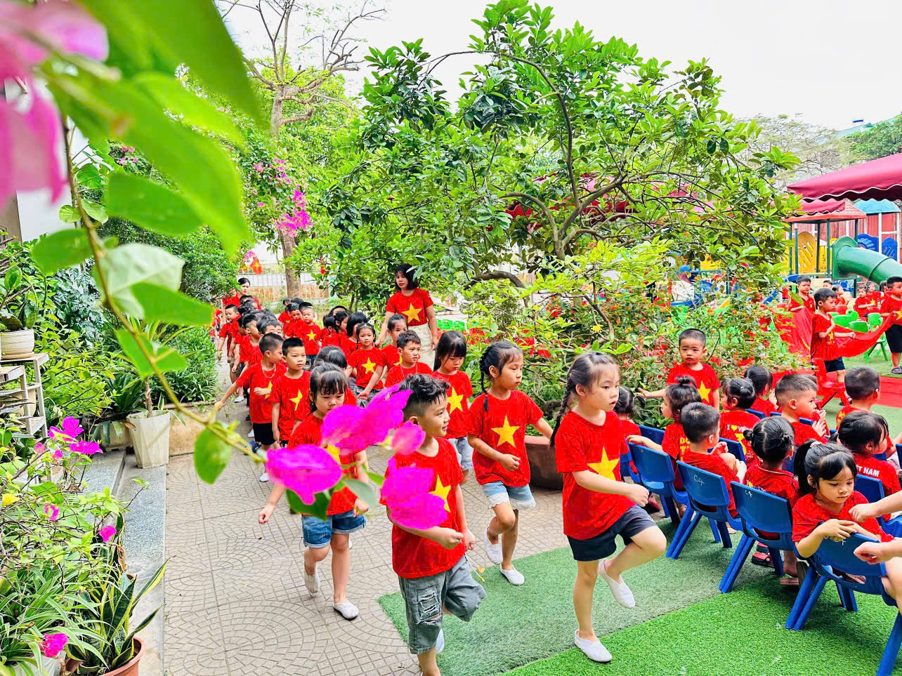 Thông qua hoạt động, các bé thêm yêu thích vận động, mạnh dạn, tự tin hơn trong các hoạt động tập thể 🏃♂️🎊