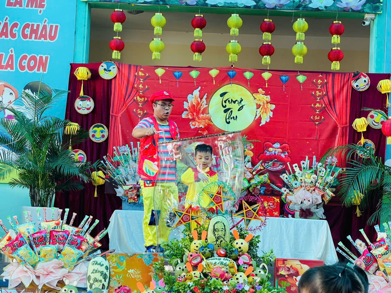 🍰 Không thể thiếu là phần phá cỗ trung thu – nơi các con cùng nhau chia sẻ bánh kẹo, hoa quả trong tình yêu thương và đoàn kết.