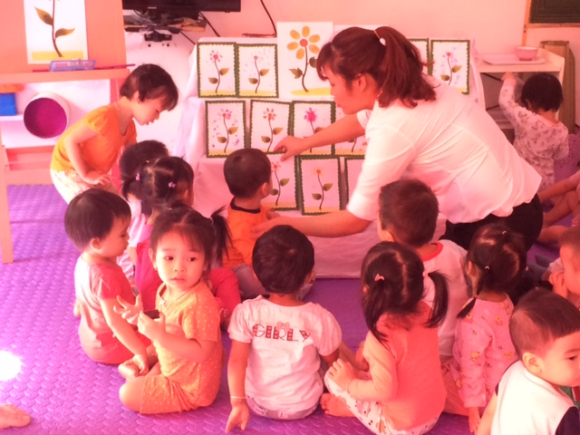 Hoạt động tạo hình của các bé lớp nhà trẻ là rất khó, bởi cơ tay còn yếu nên các kĩ năng di màu, dán đính, in màu chưa tốt . Bởi vậy mà cô giáo Nguyễn Thị Vân Anh đã mạnh dạn lựa chọn đề tài " In màu vân tay tạo thành bông hoa". Các bé rất say sưa lắng nghe cô hướng dẫn cách in màu. Mặc dù là giáo viên mới nhưng cô giáo Nguyễn Thị Vân Anh đã rất bình tình, tự tin, giọng nói truyền cảm nên đã thu hút được các bé tích cực tham gia vào hoạt động.Giờ học được đánh giá xếp loại tốt.