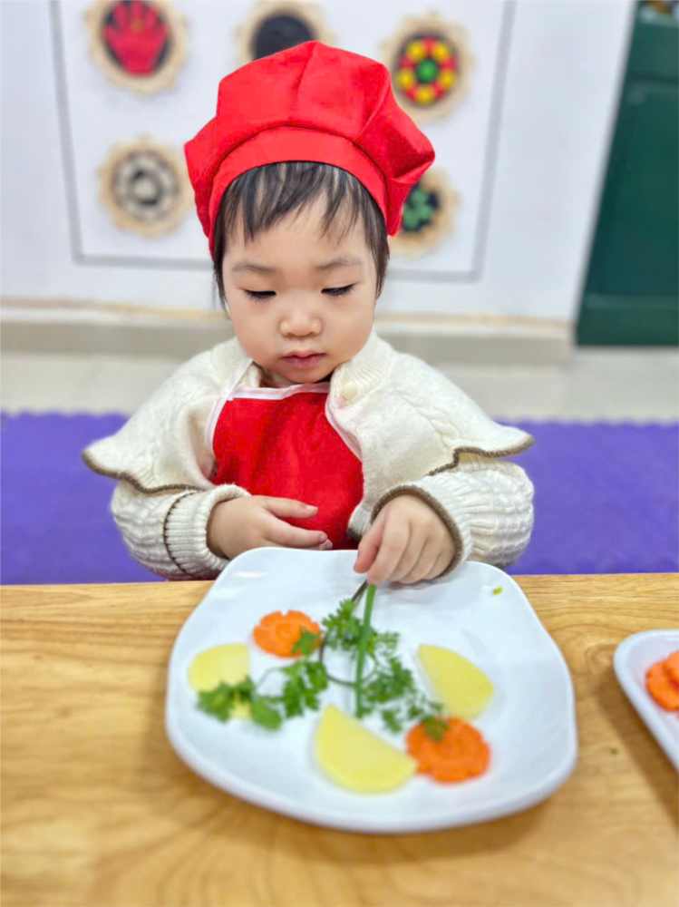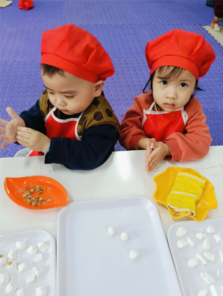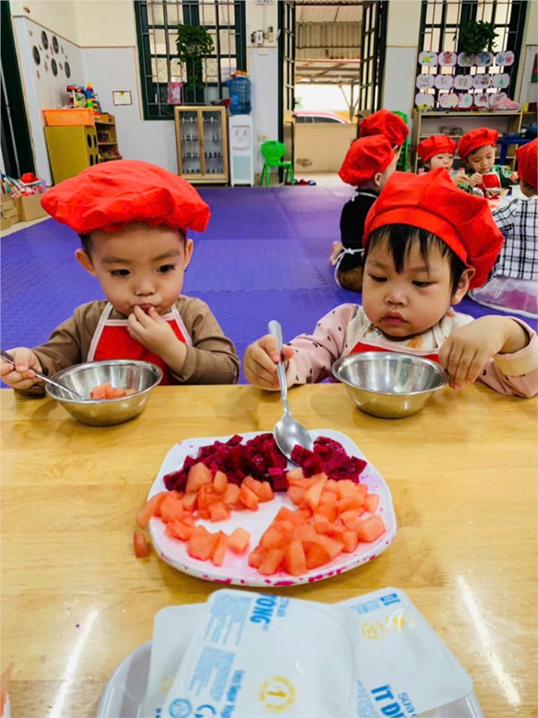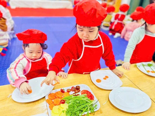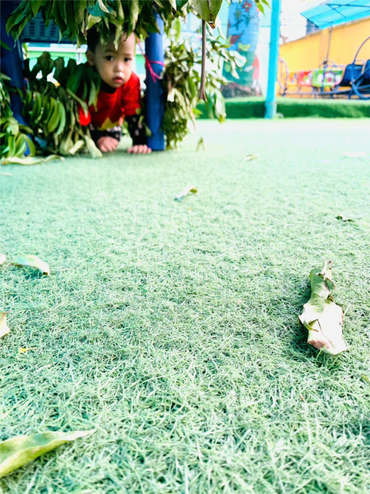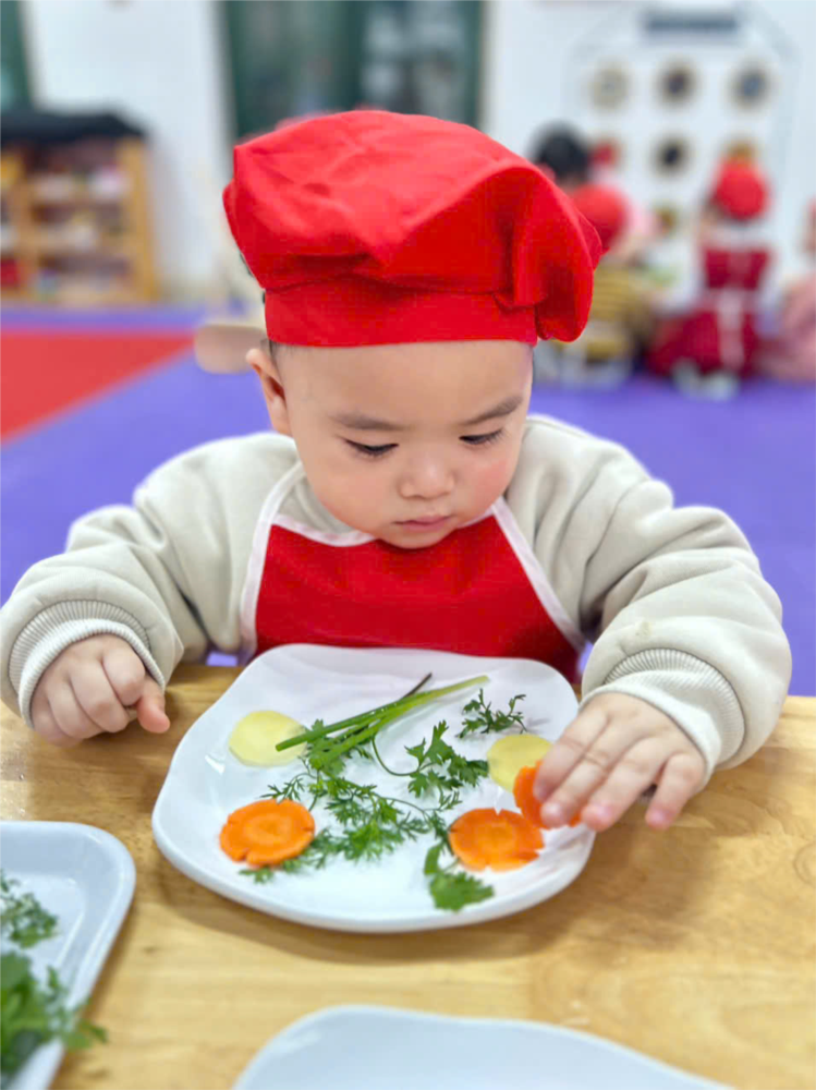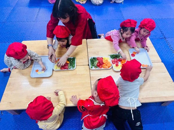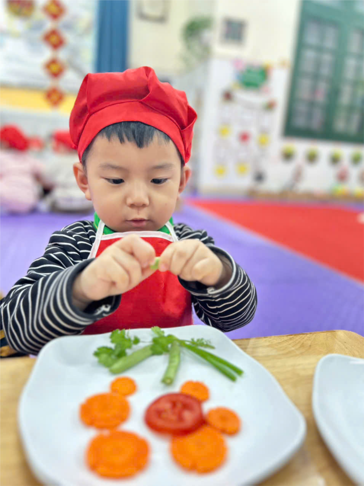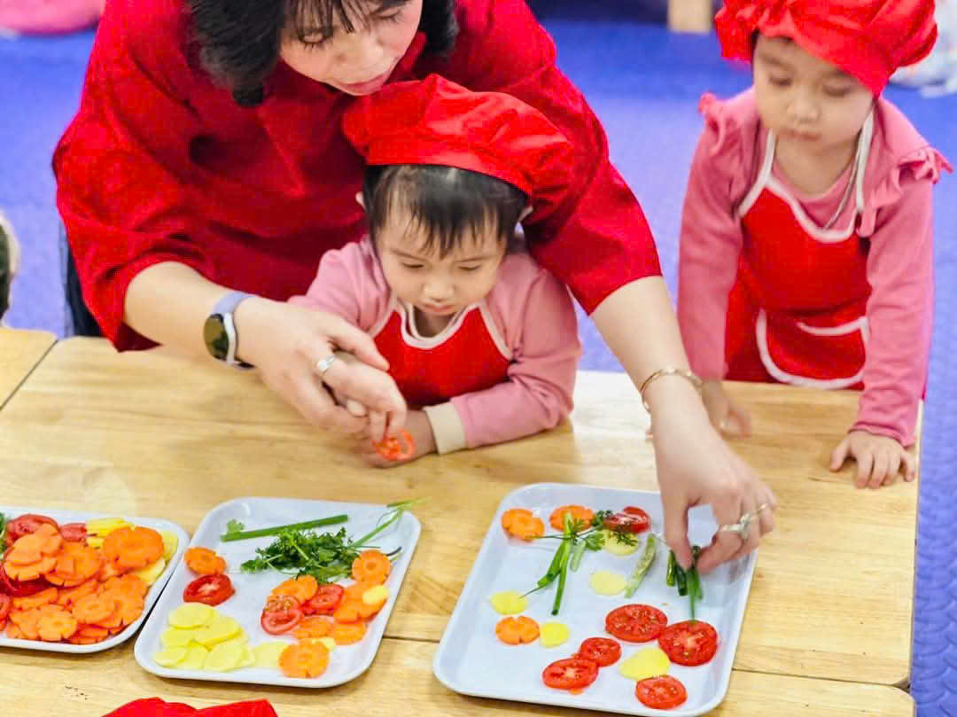 Một số hình ảnh các bé lớp NTD1 nhặt rau giúp mẹ