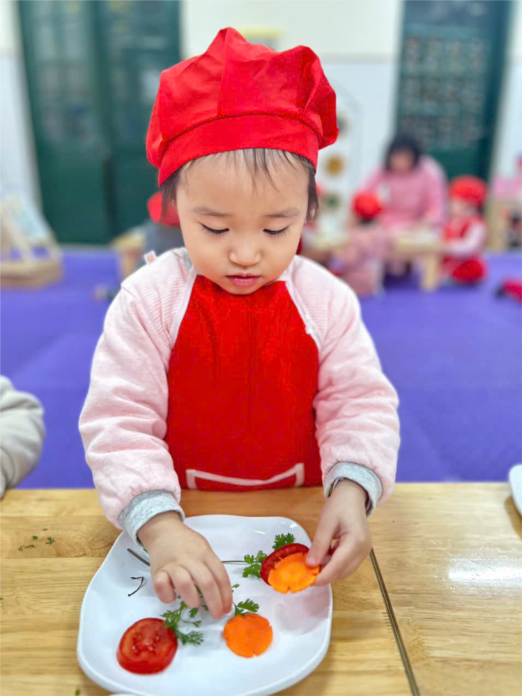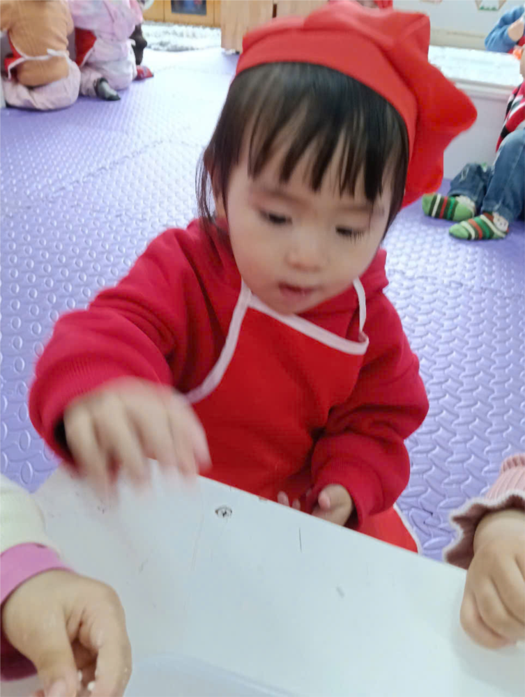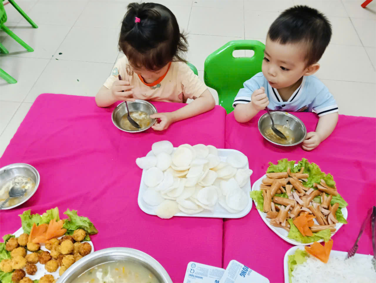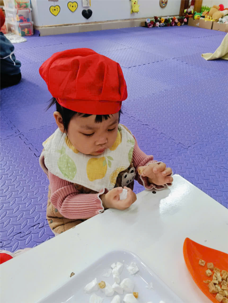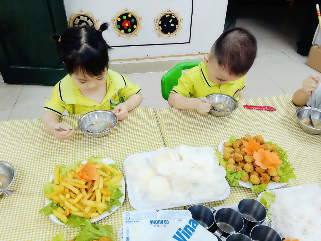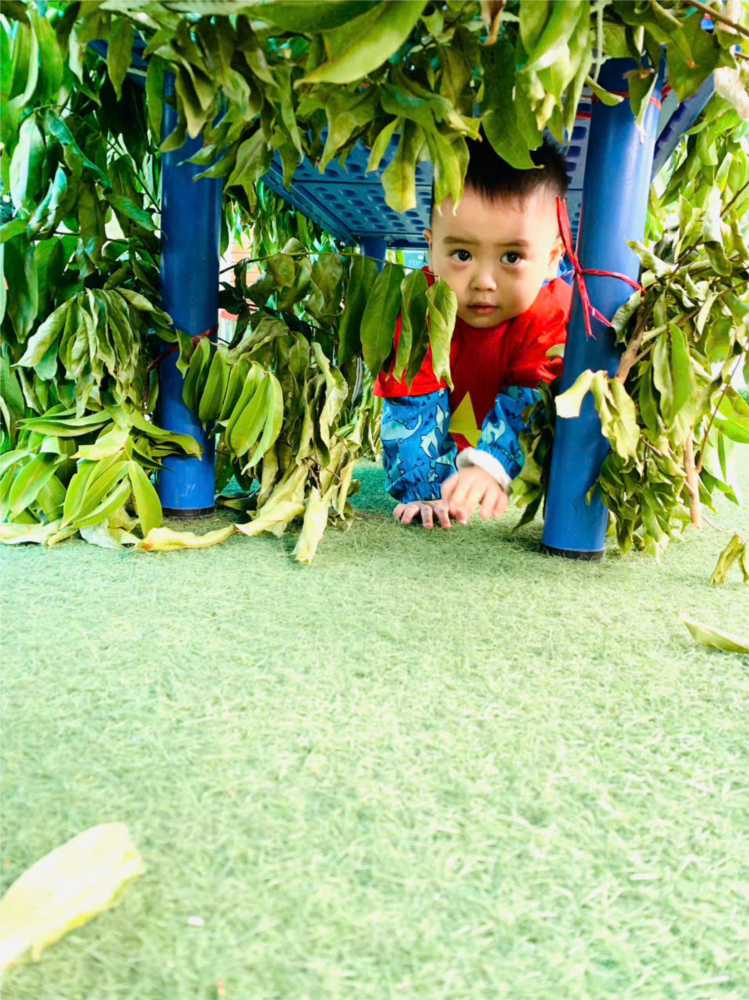 Một số hình ảnh các bé lớp NTD1 nhặt rau giúp mẹ