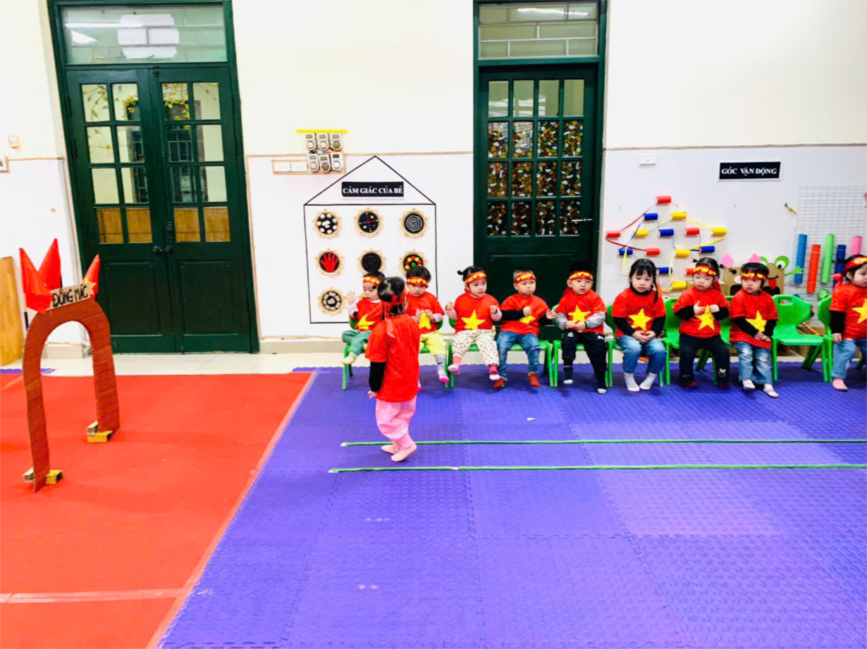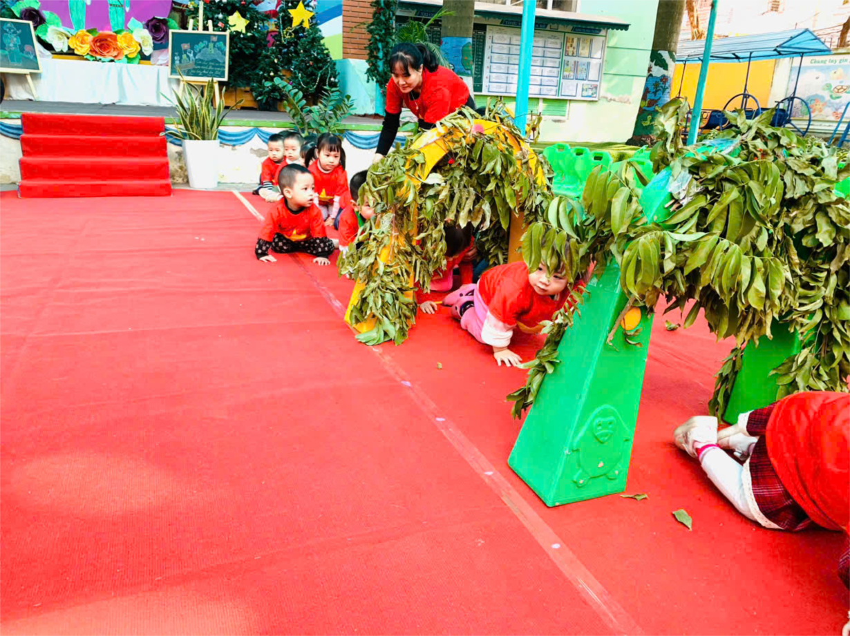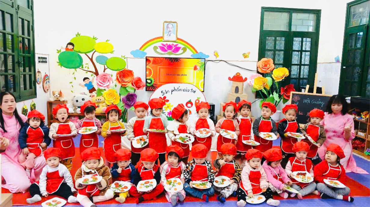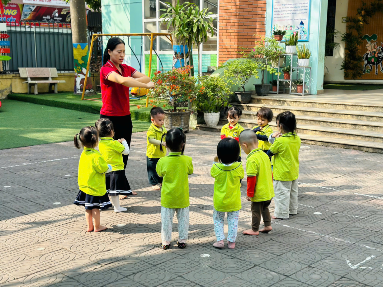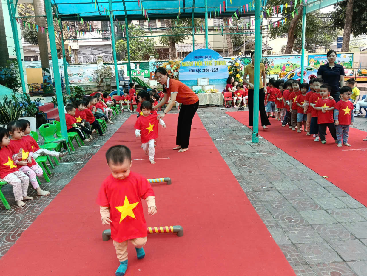 Cô và các bạn lớp nhà trẻ D1 cùng tham gia liên hoan chúng cháu vui khỏe