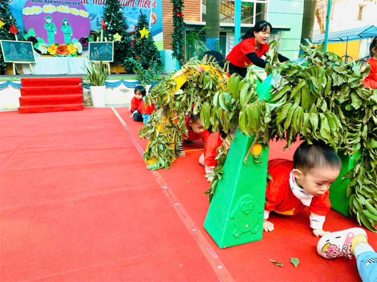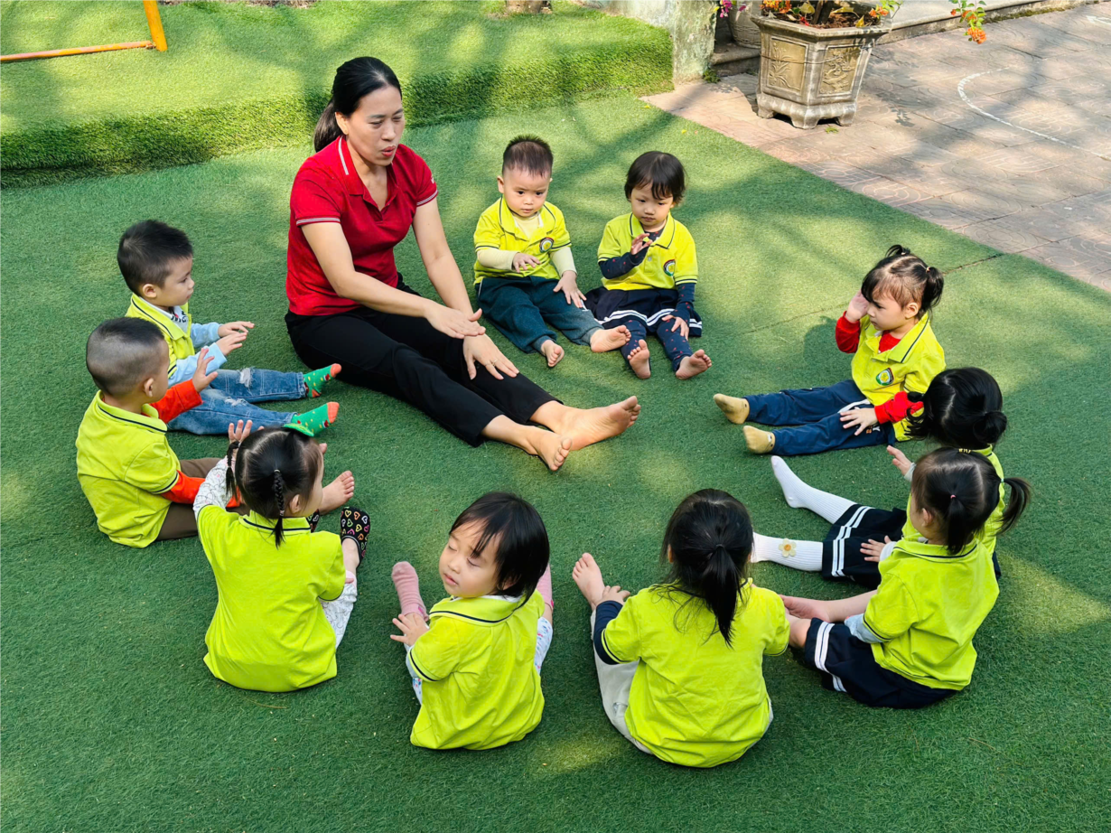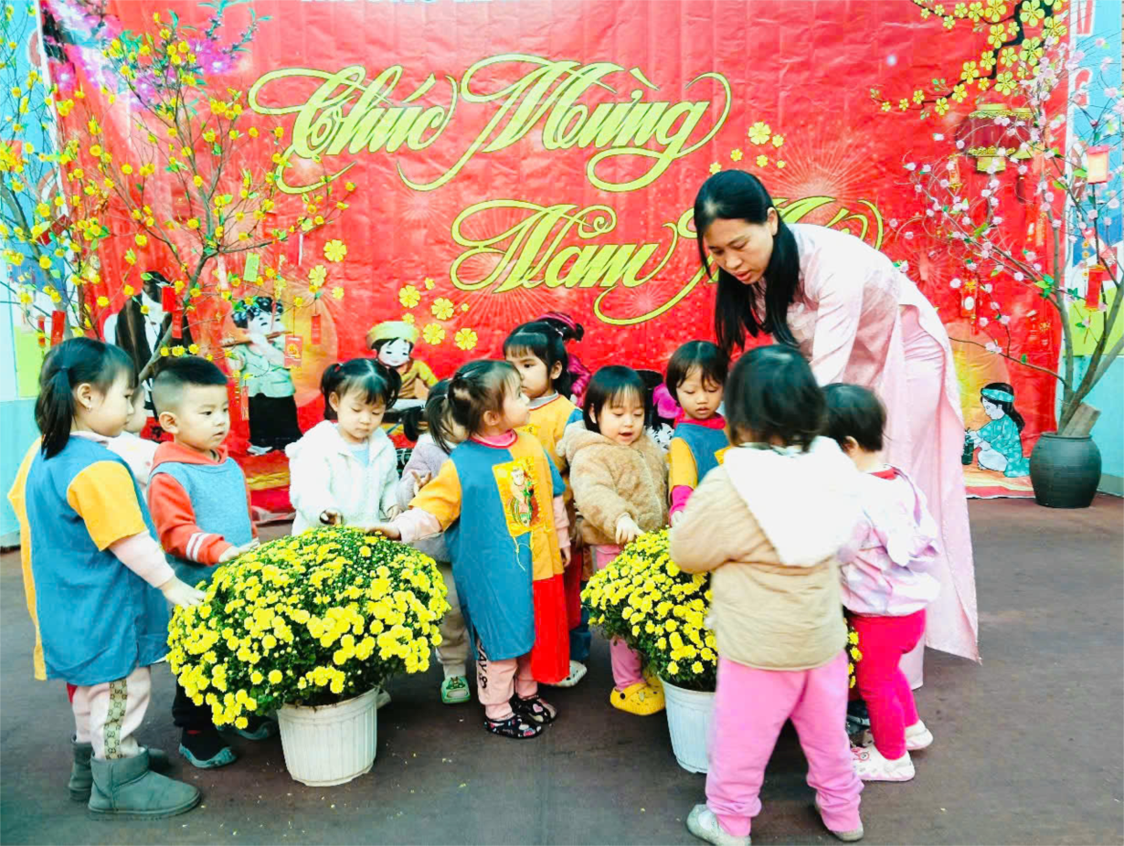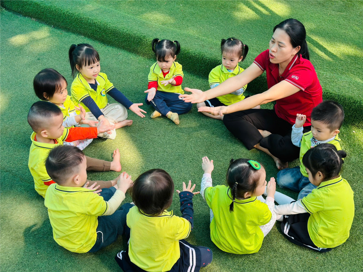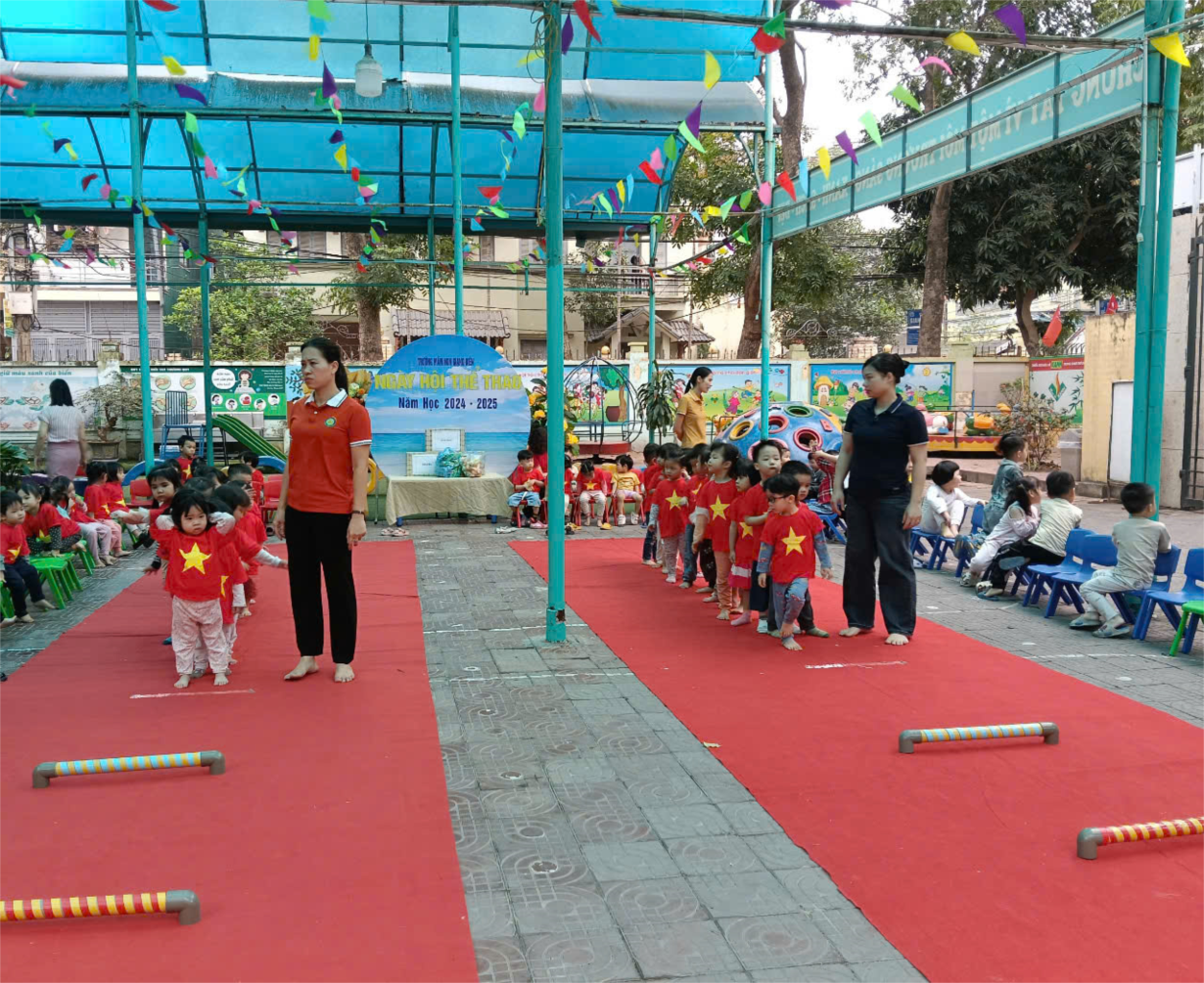 Cô và các bạn lớp nhà trẻ D1 cùng tham gia liên hoan chúng cháu vui khỏe