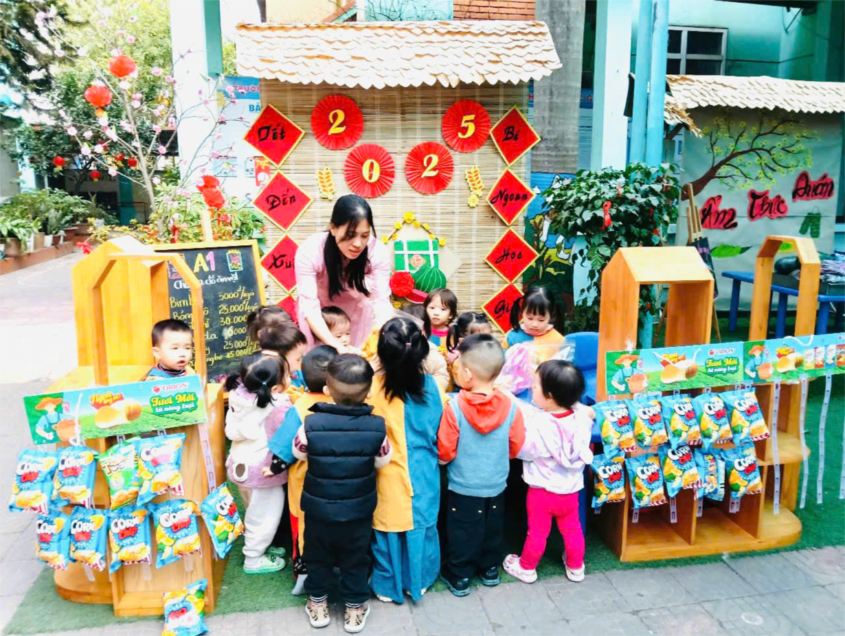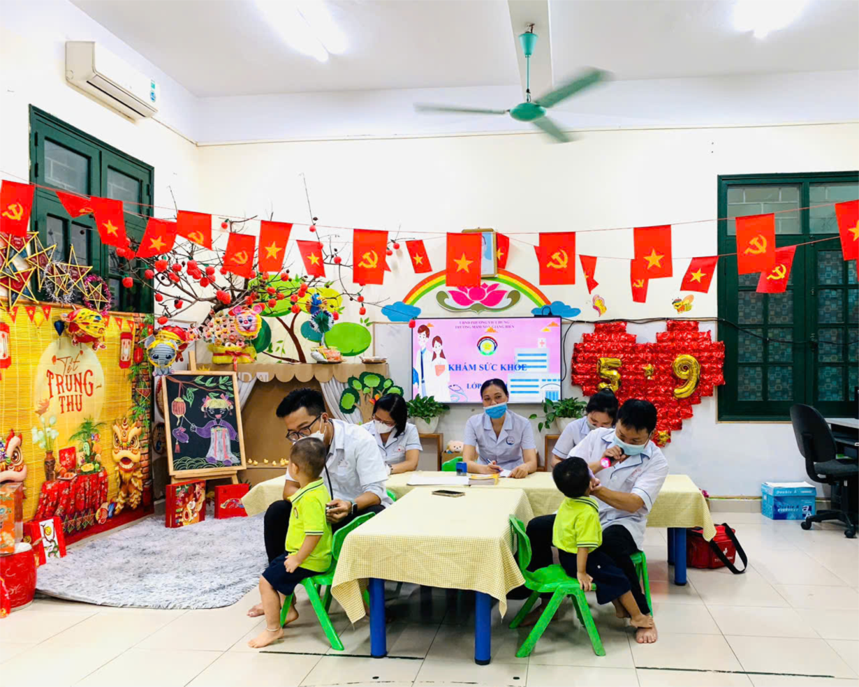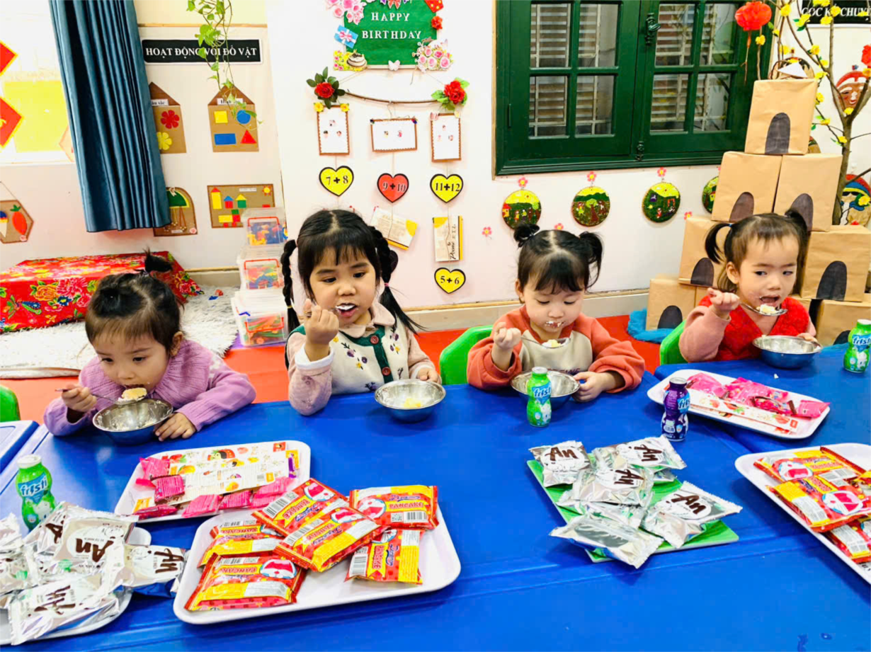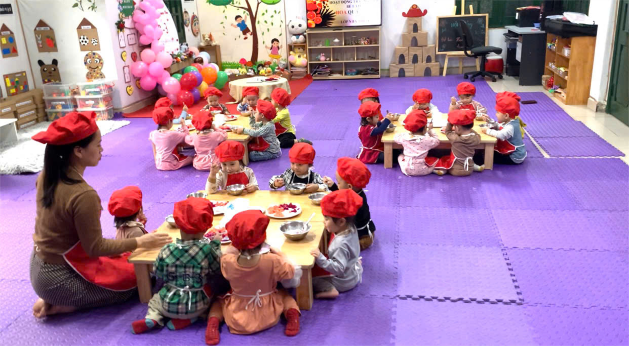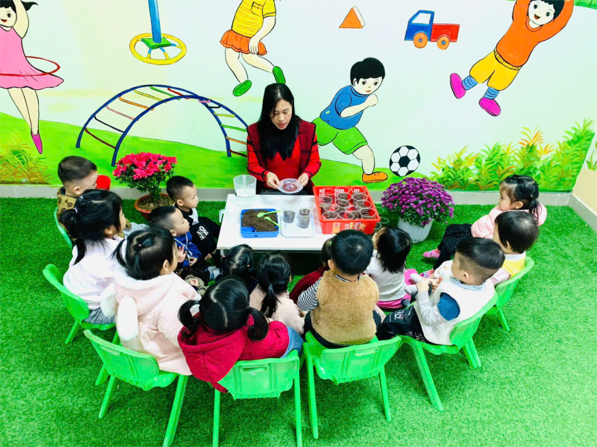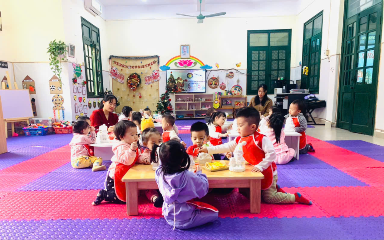 Cô và các bạn lớp nhà trẻ D1 cùng tham gia liên hoan chúng cháu vui khỏe