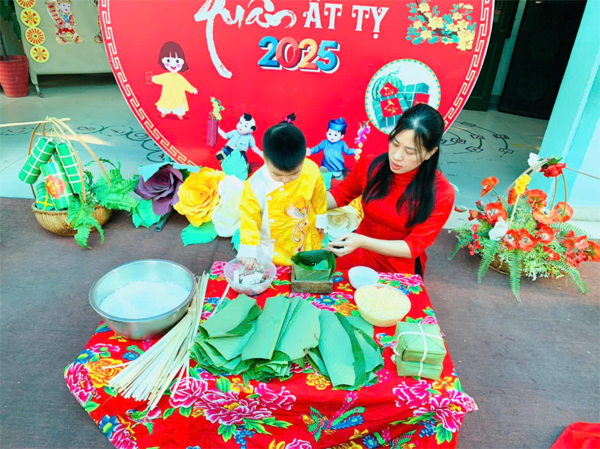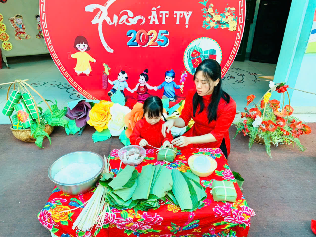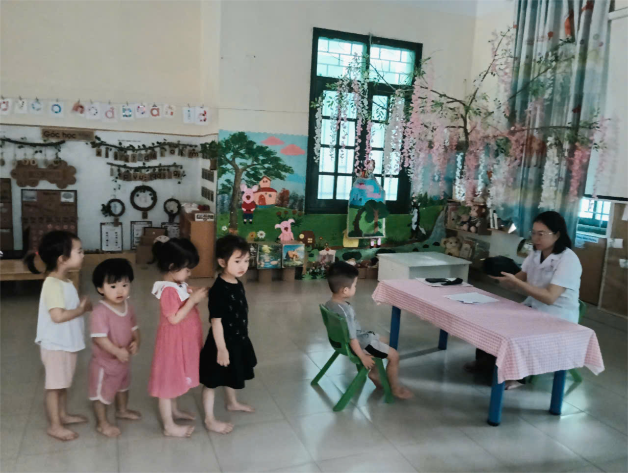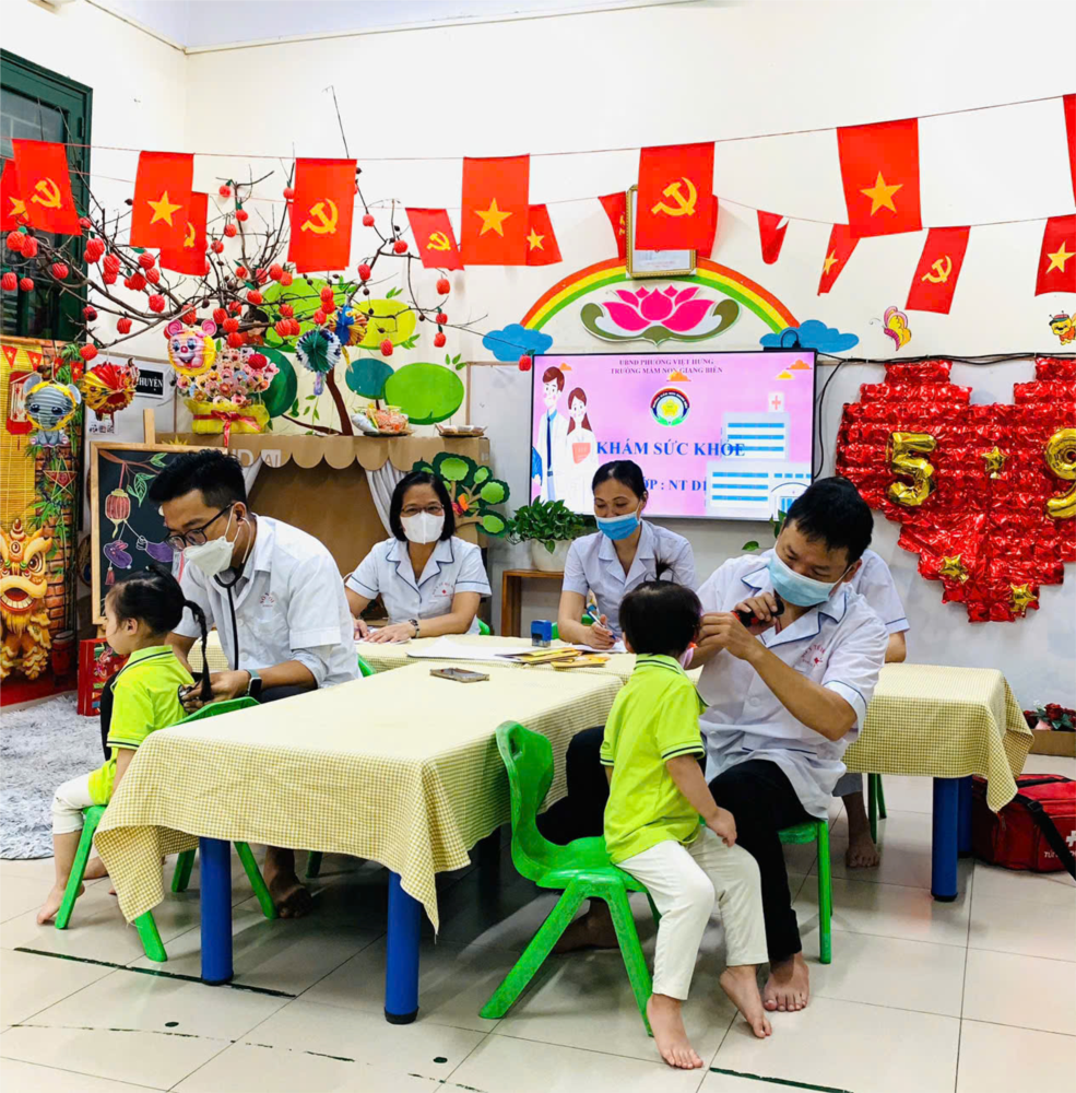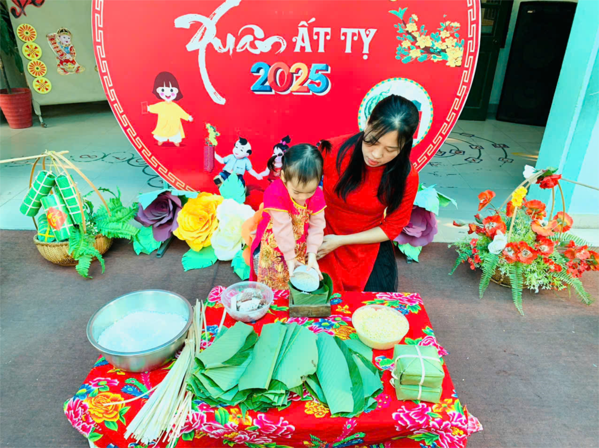 Cô và các bạn lớp nhà trẻ D1 cùng tham gia liên hoan chúng cháu vui khỏe