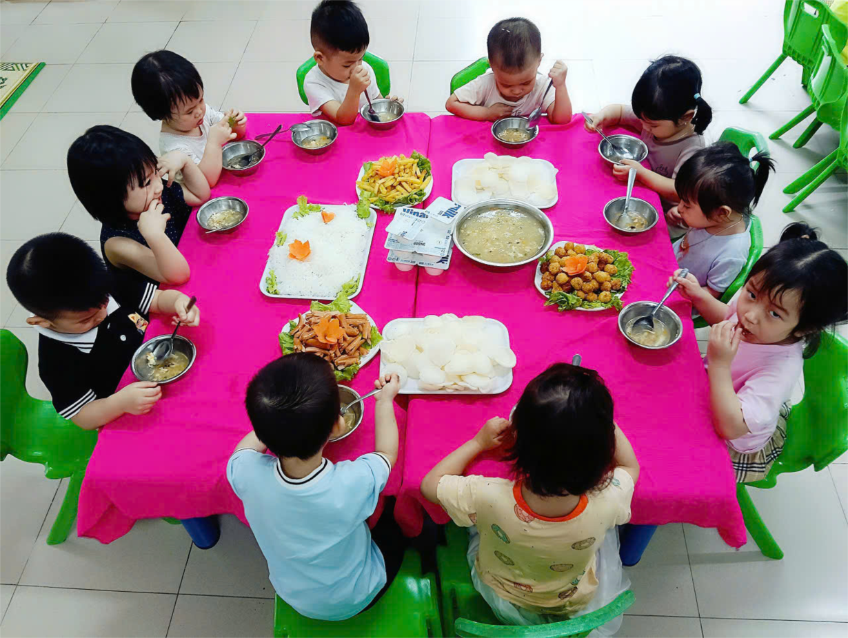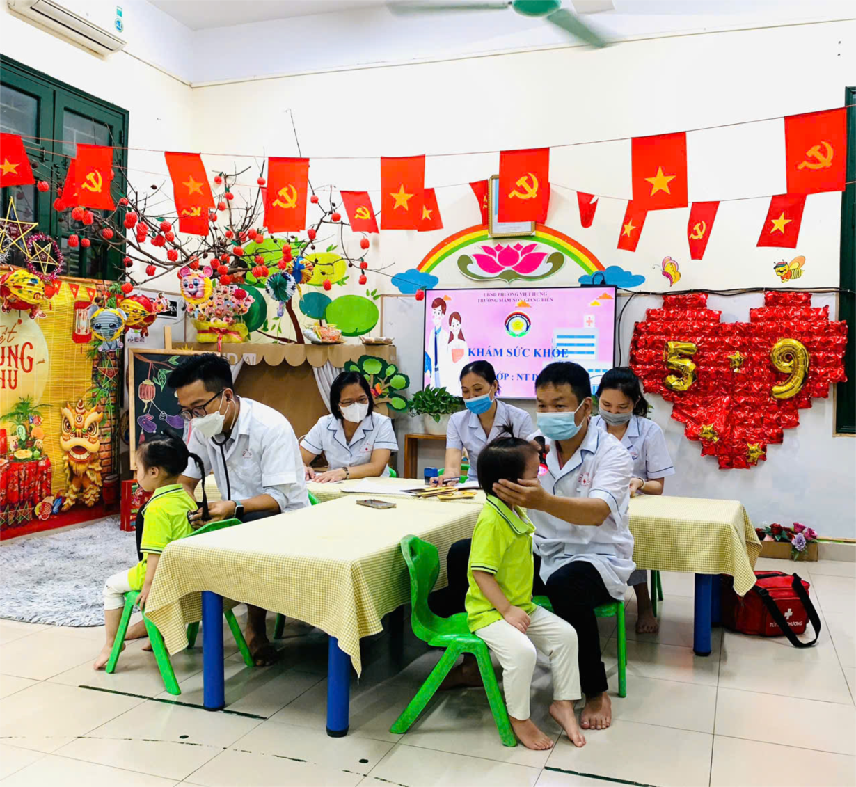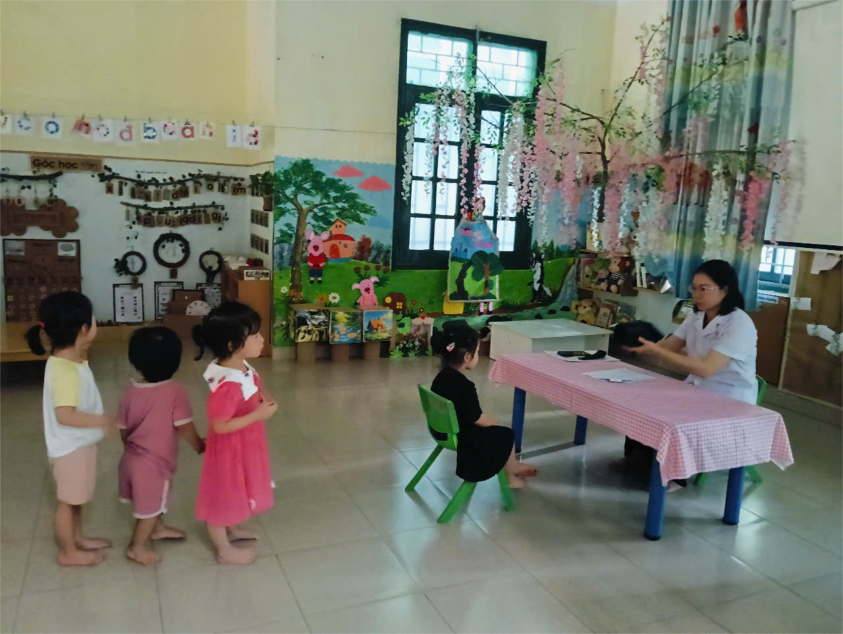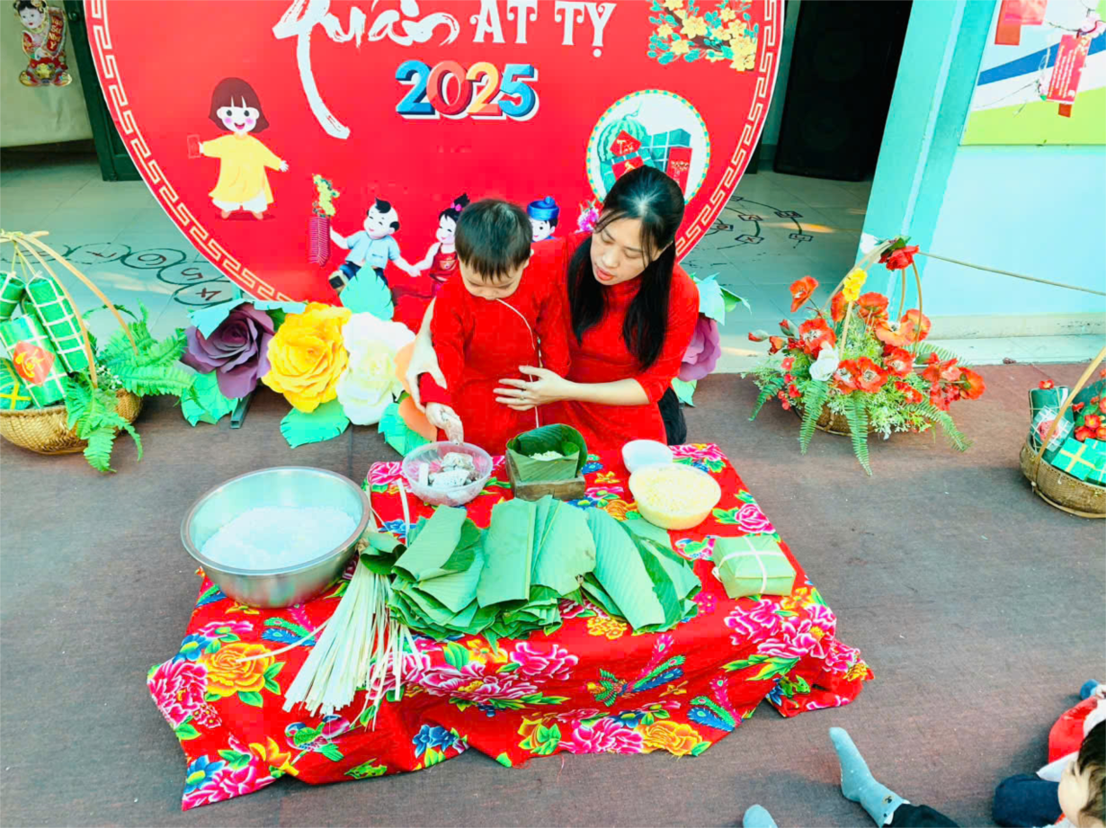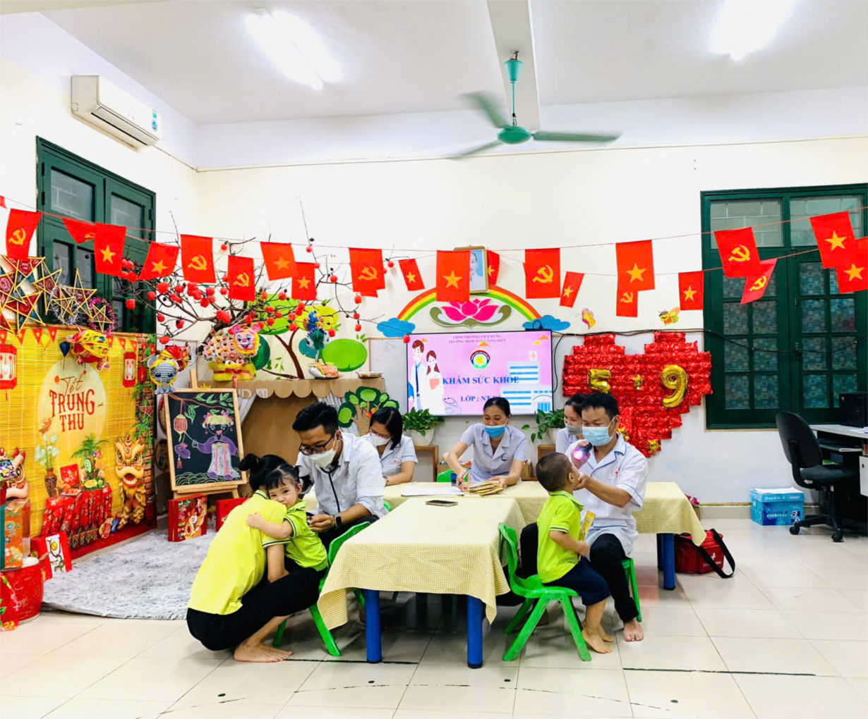 Cô và các bạn lớp nhà trẻ D1 cùng tham gia liên hoan chúng cháu vui khỏe