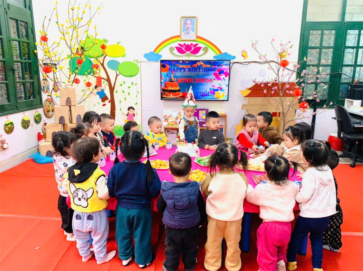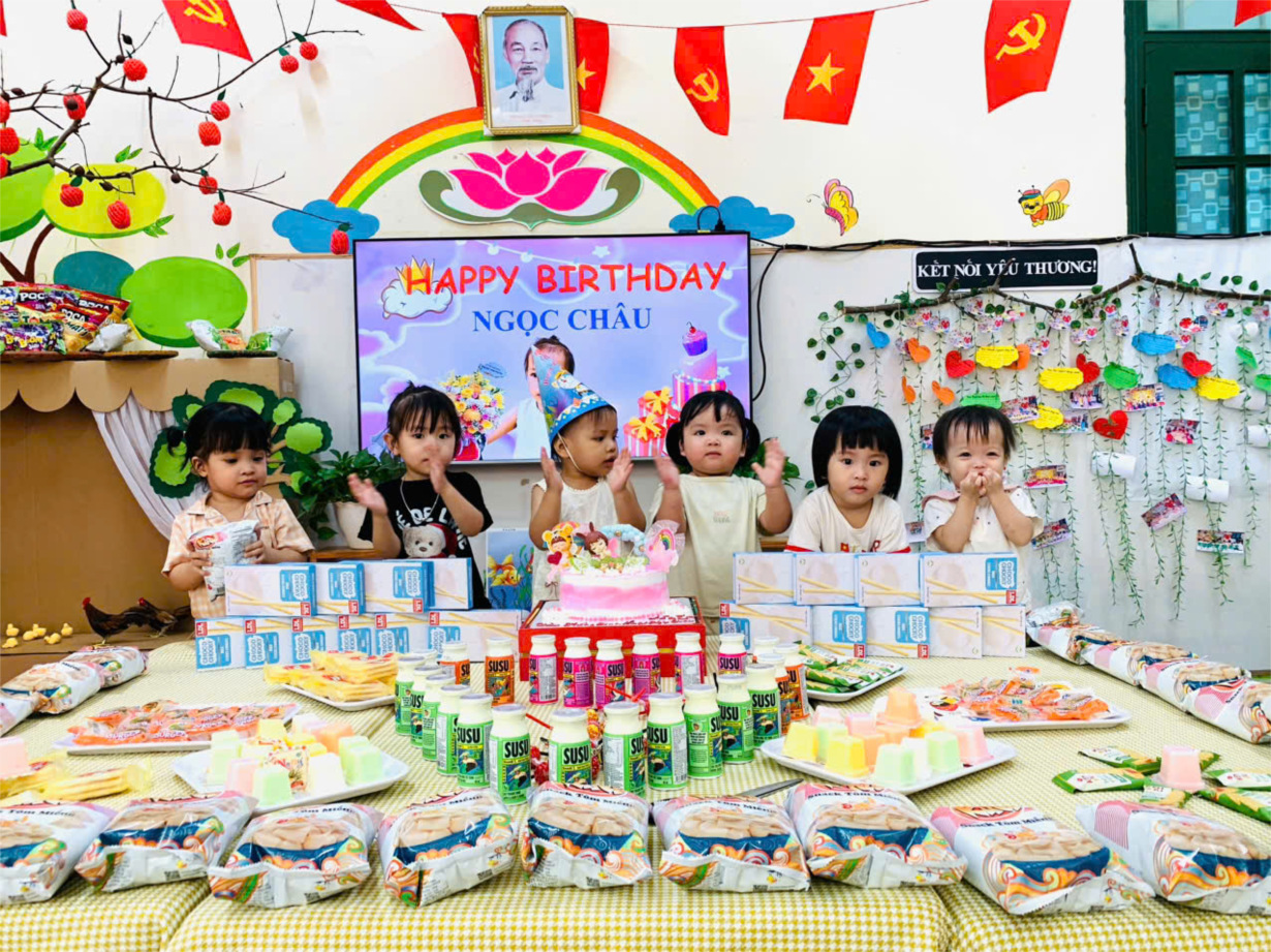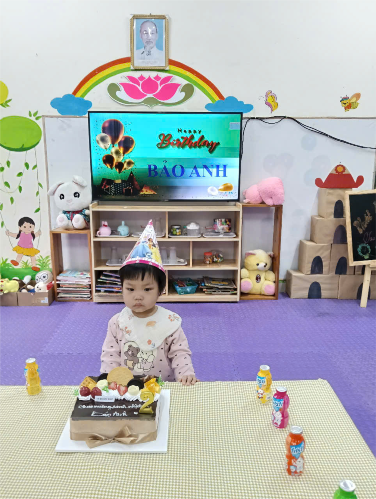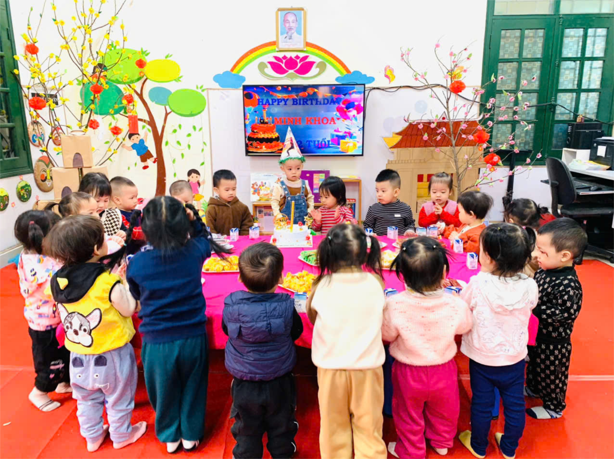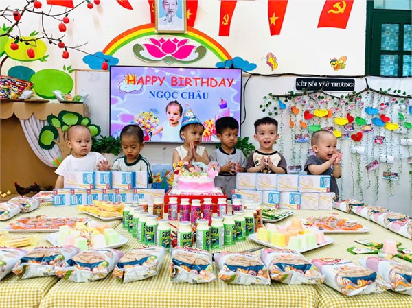 Cô và các bạn chúc mừng sinh nhật bạn Nguyễn Hoàng Ngân lớp nhà trẻ D1