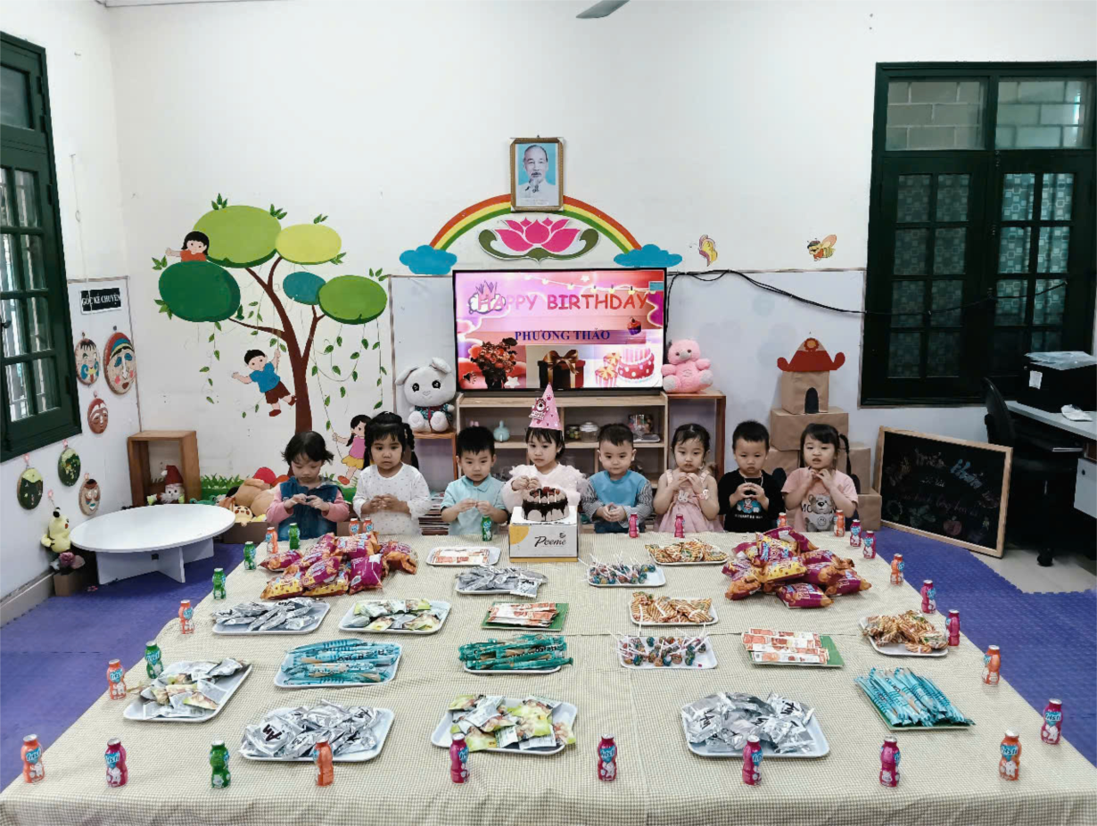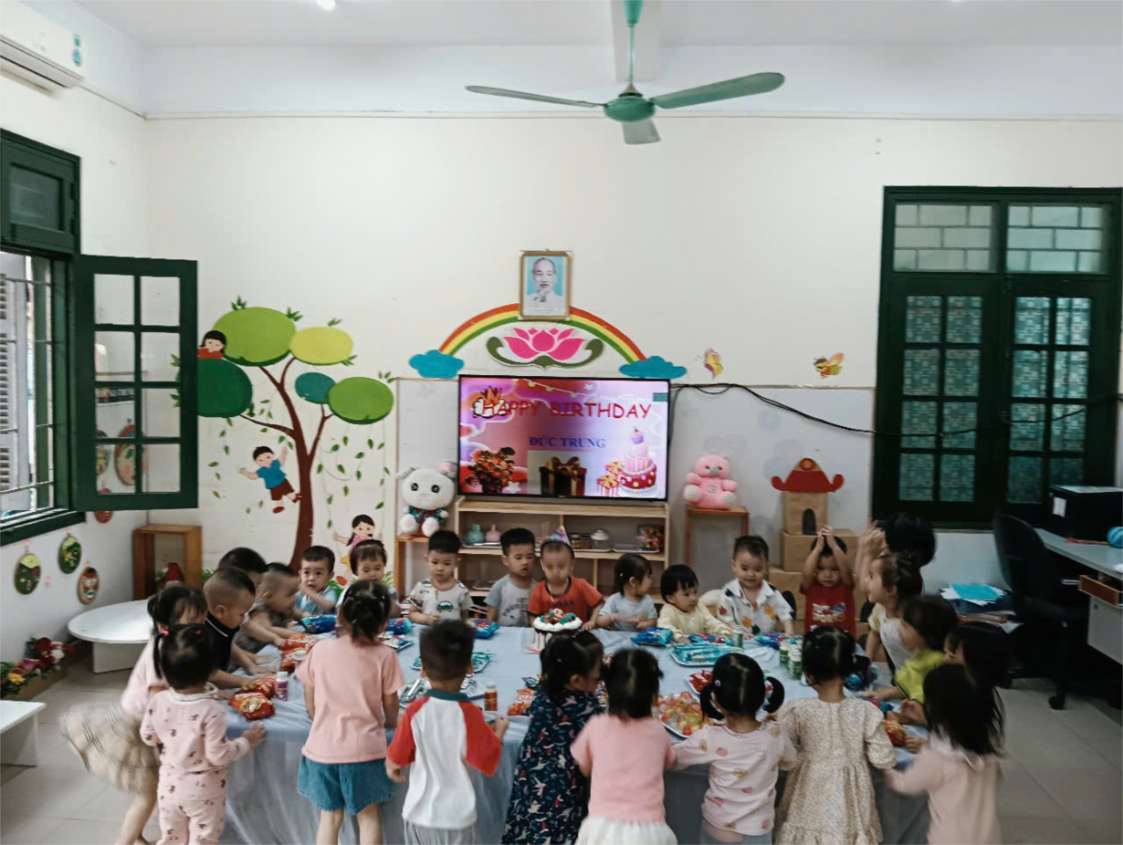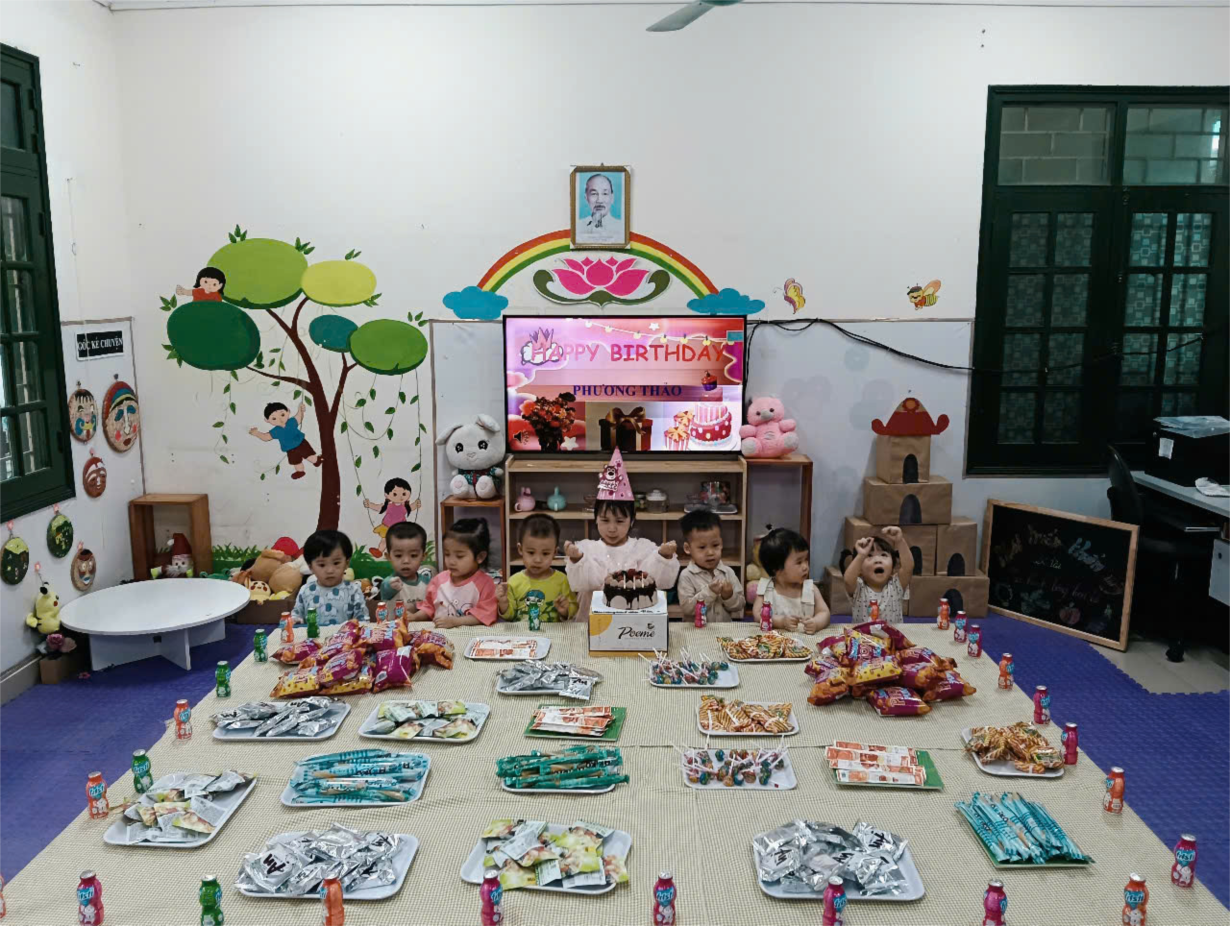 Cô và các bạn chúc mừng sinh nhật bạn Nguyễn Hoàng Ngân lớp nhà trẻ D1