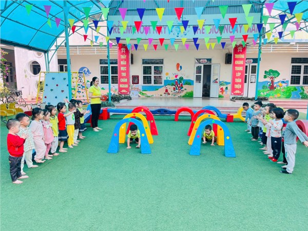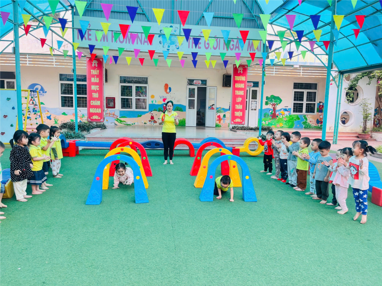 Giò học thể dục: Bò chui qua cổng" của các bé lớp MGBC3