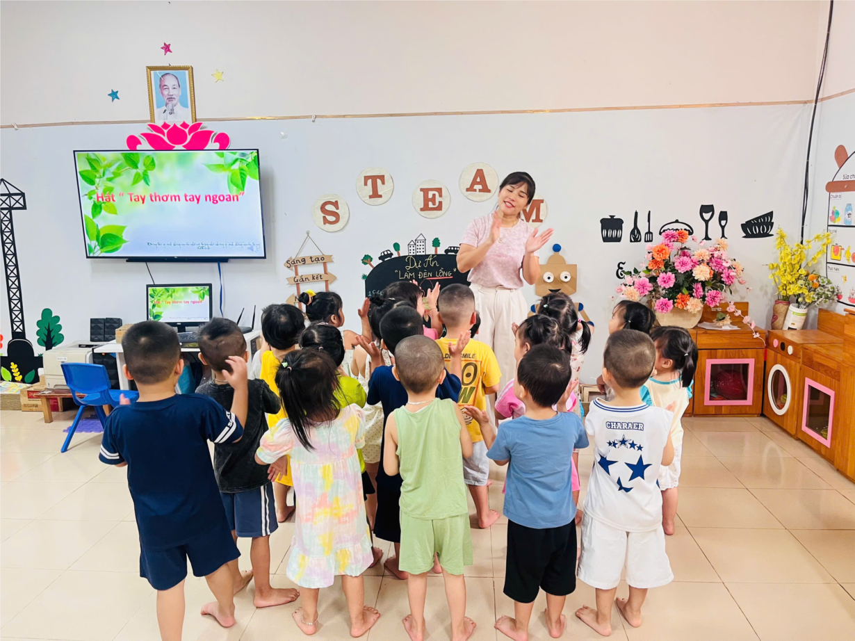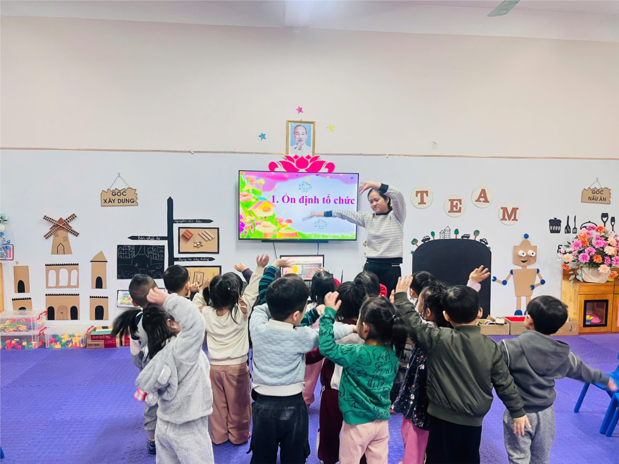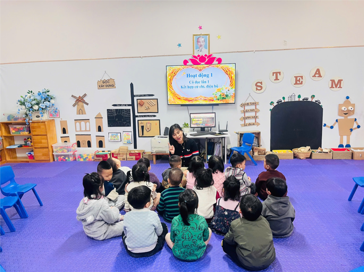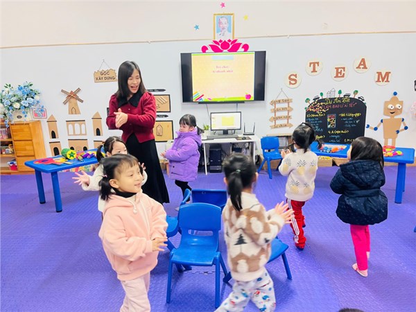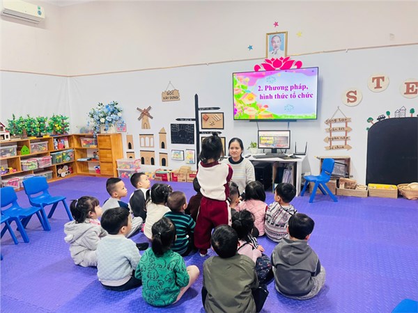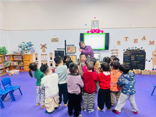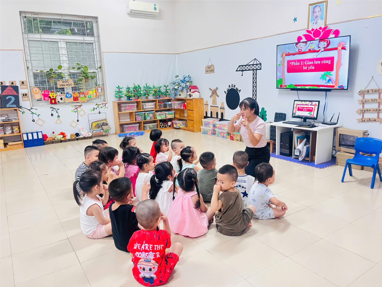 Giờ học dạy trẻ kỹ năng chào hỏi lễ phép của cô và trò lớp MGB C3