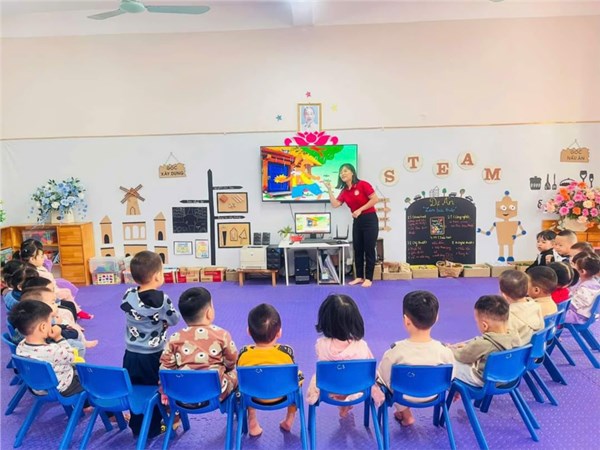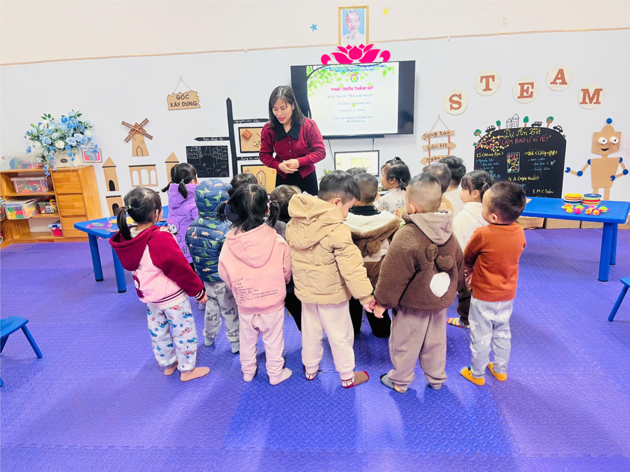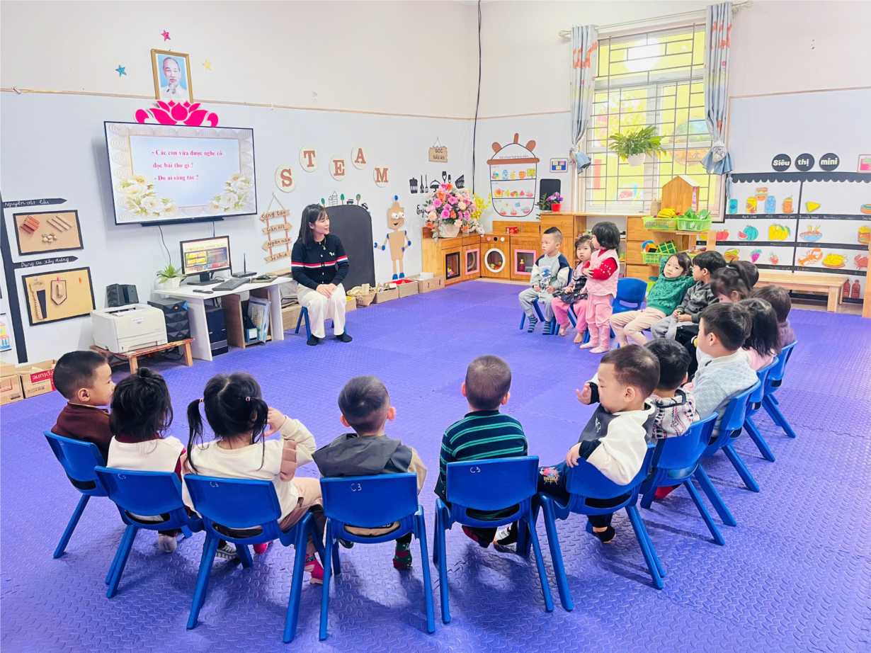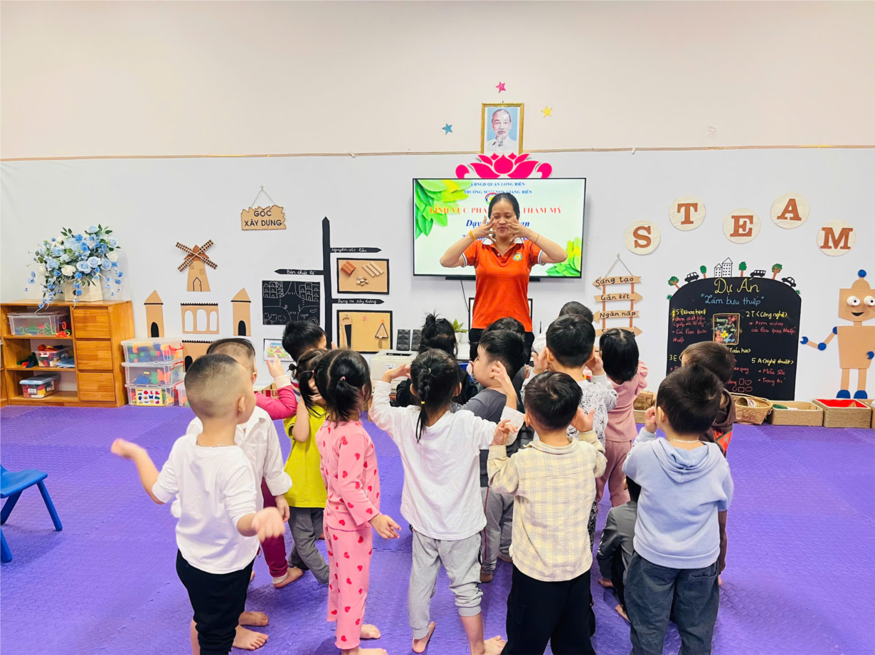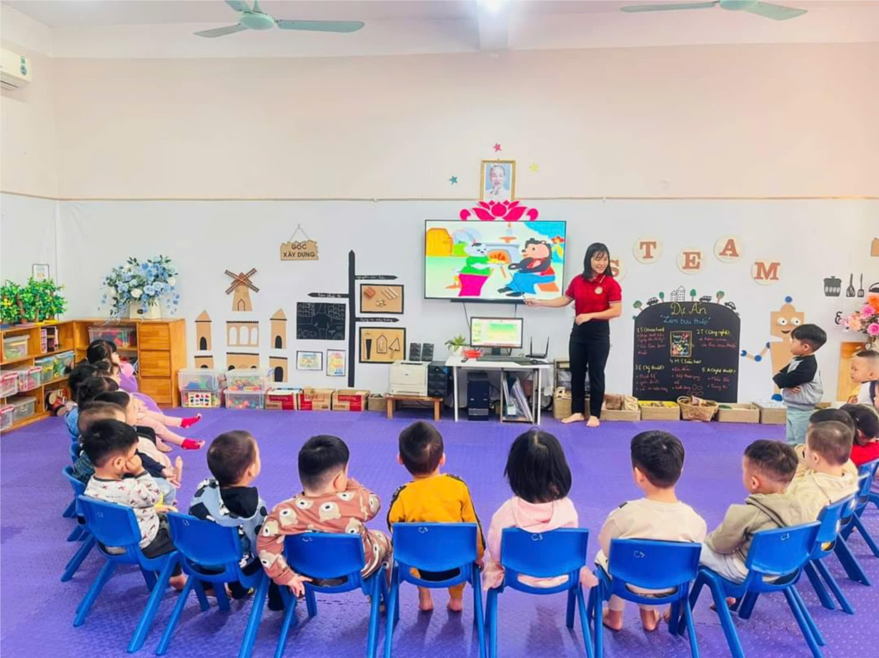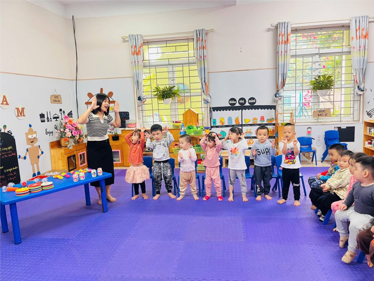Giờ học dạy trẻ kỹ năng chào hỏi lễ phép của cô và trò lớp MGB C3