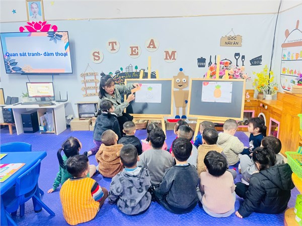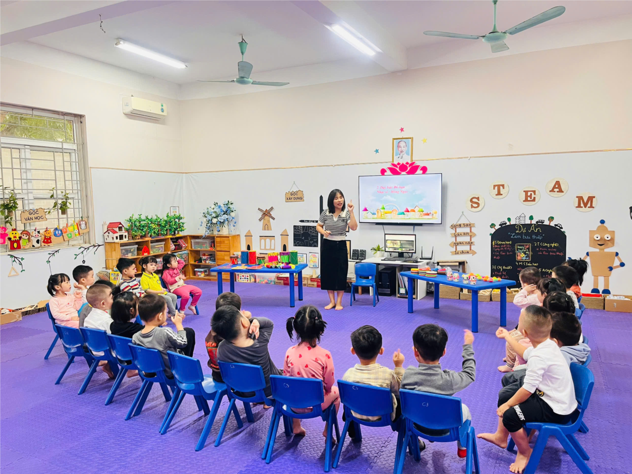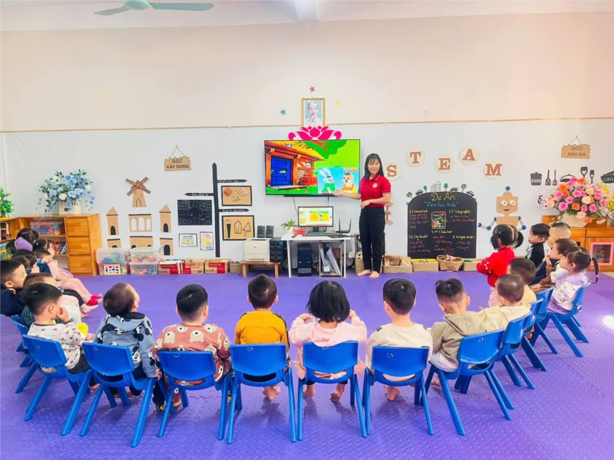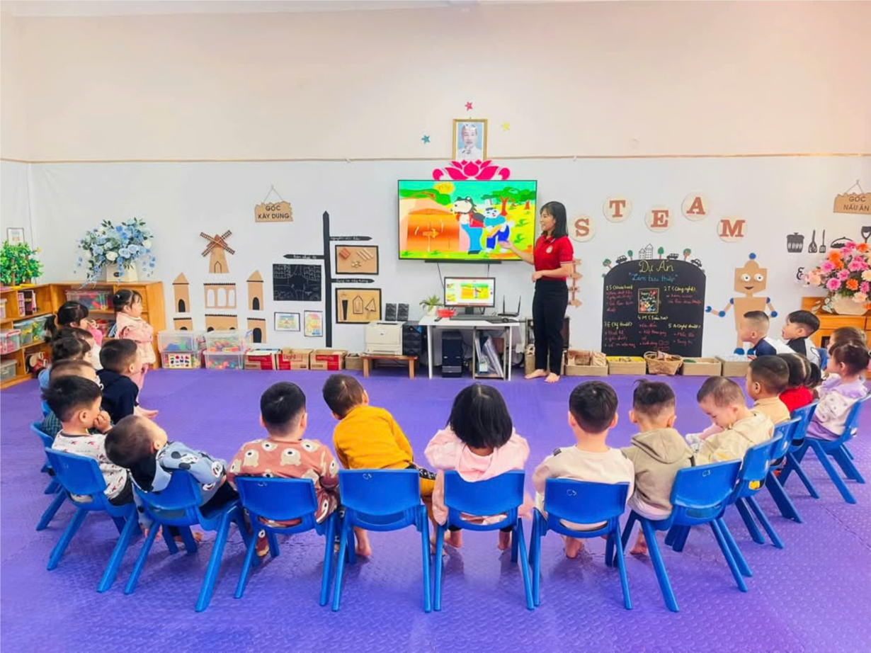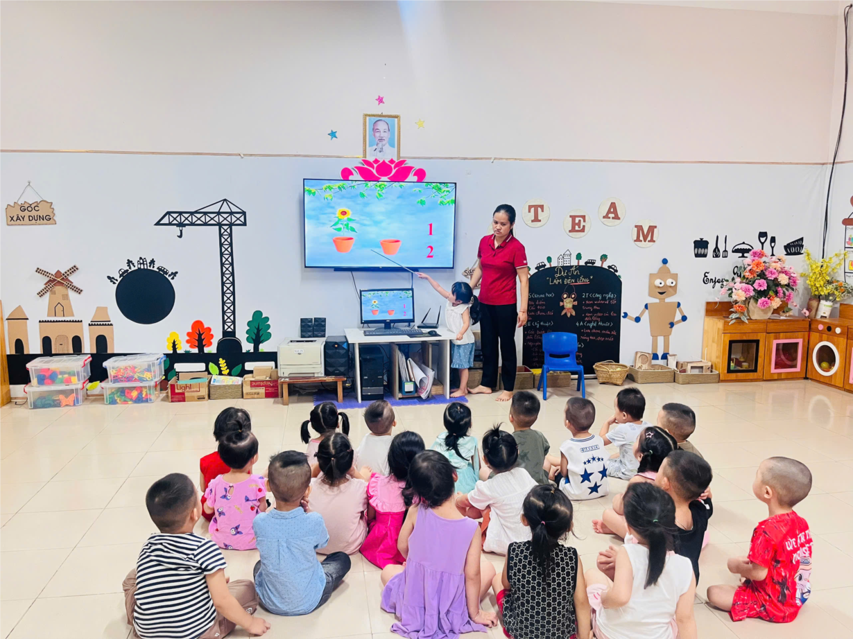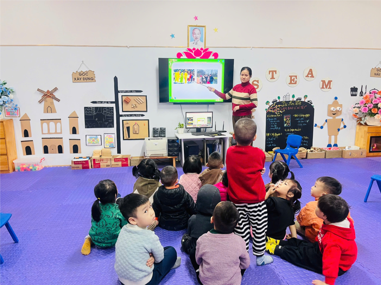 Giờ học dạy trẻ kỹ năng chào hỏi lễ phép của cô và trò lớp MGB C3