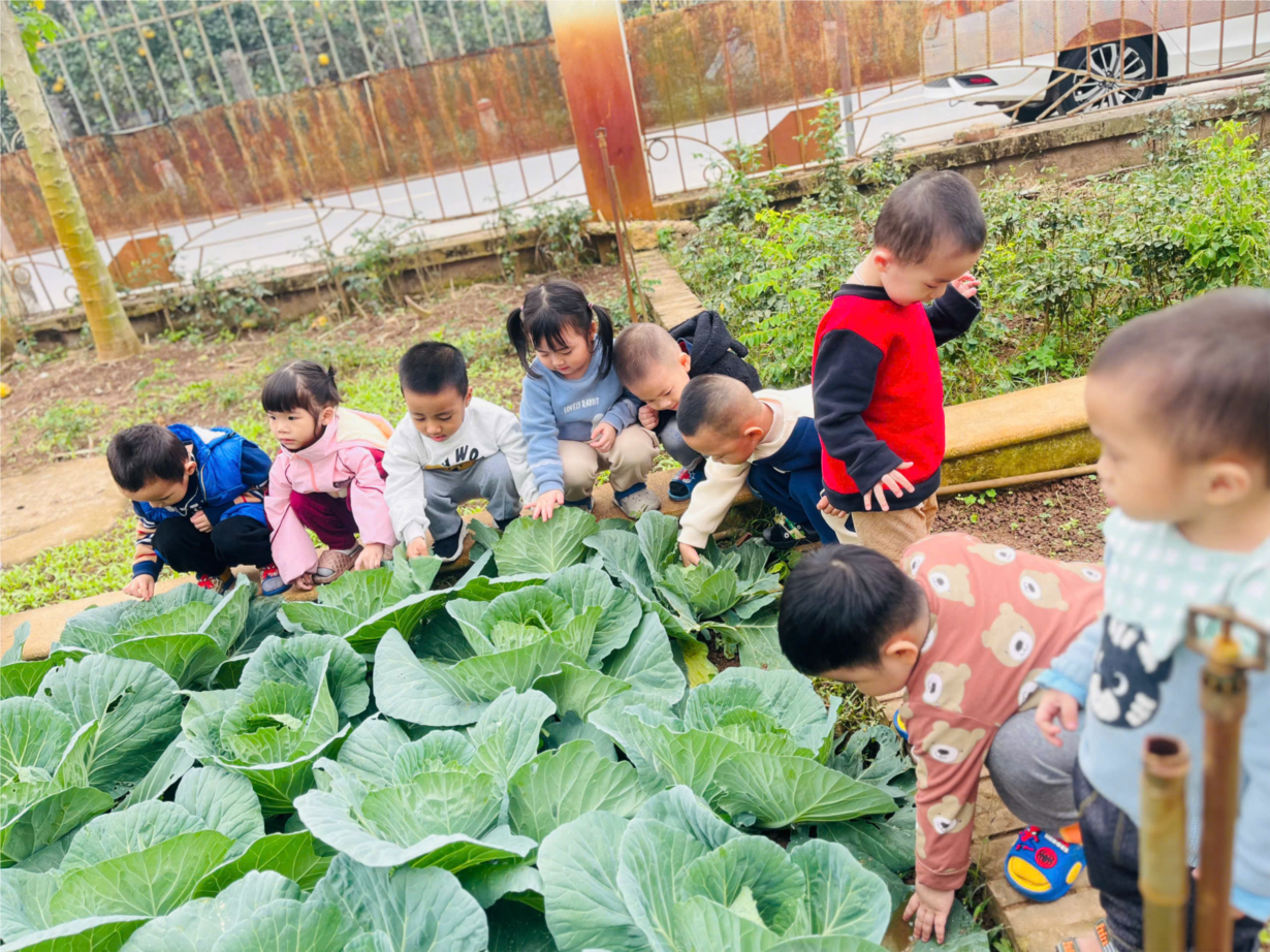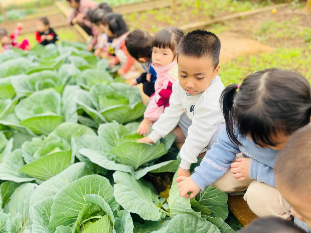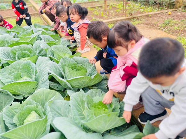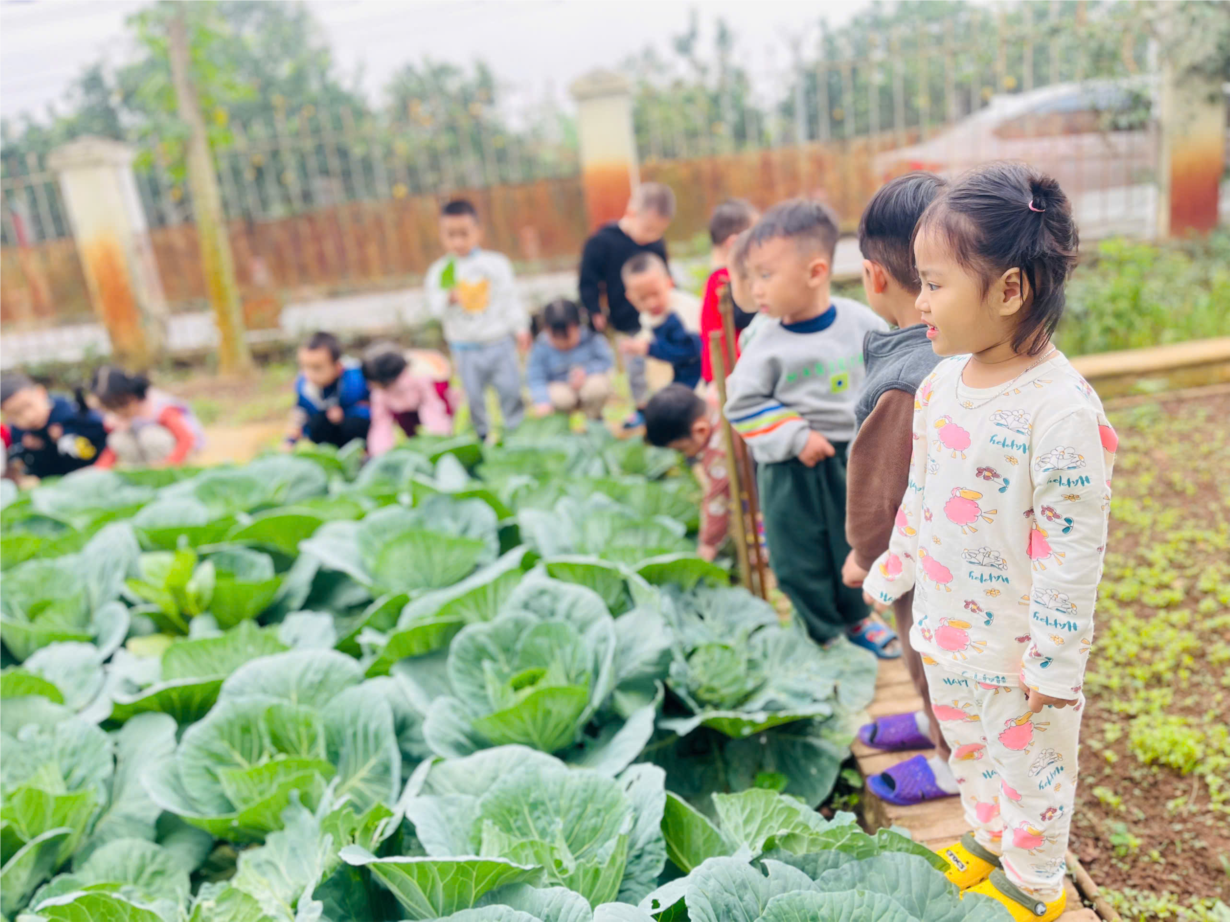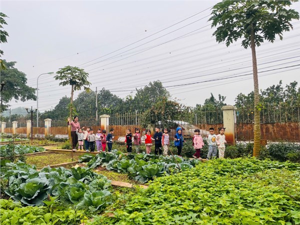 Trẻ quan sát vườn rau của trường