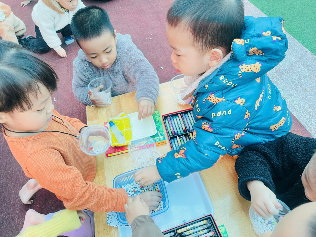 Các bé lớp MGB C3 làm quả cầu tuyết đón Giáng sinh