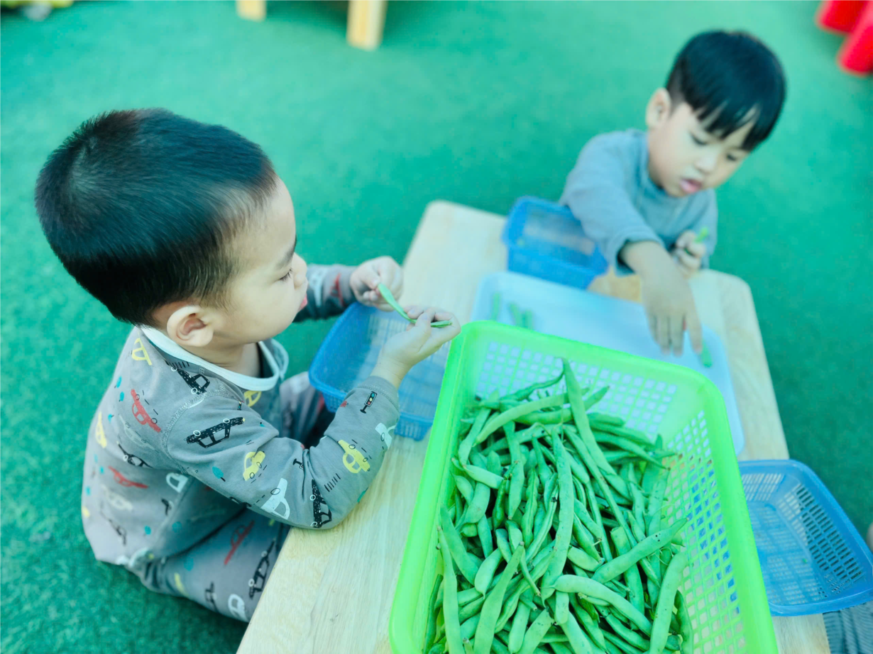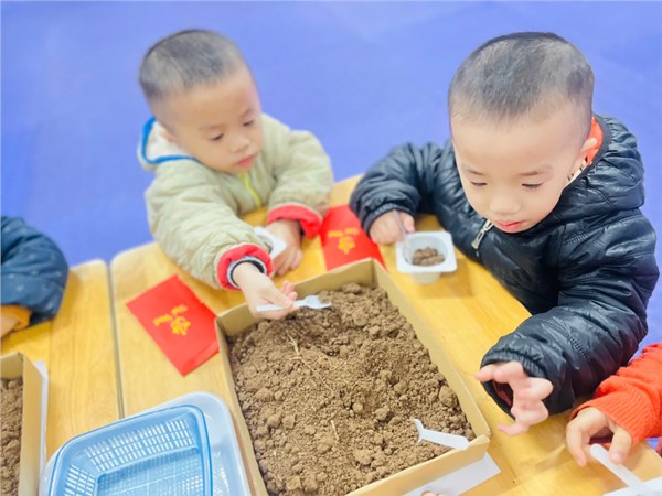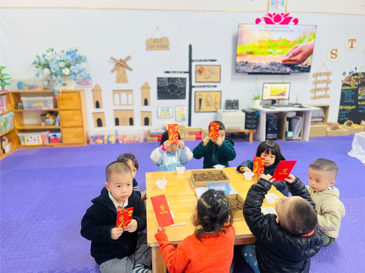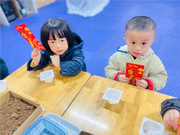 Trẻ trải nghiệm gieo hạt đậu đỏ đầu năm mới
