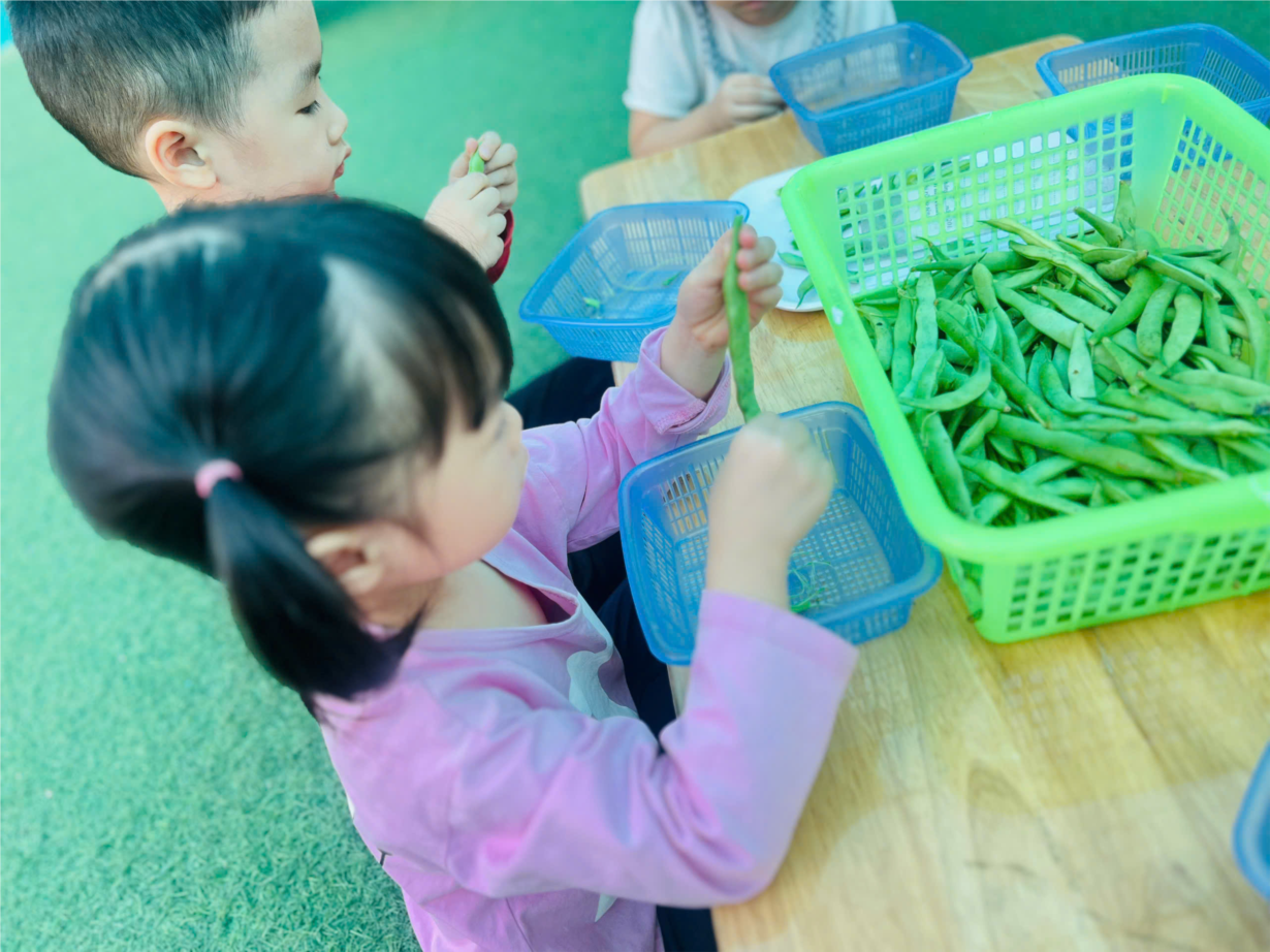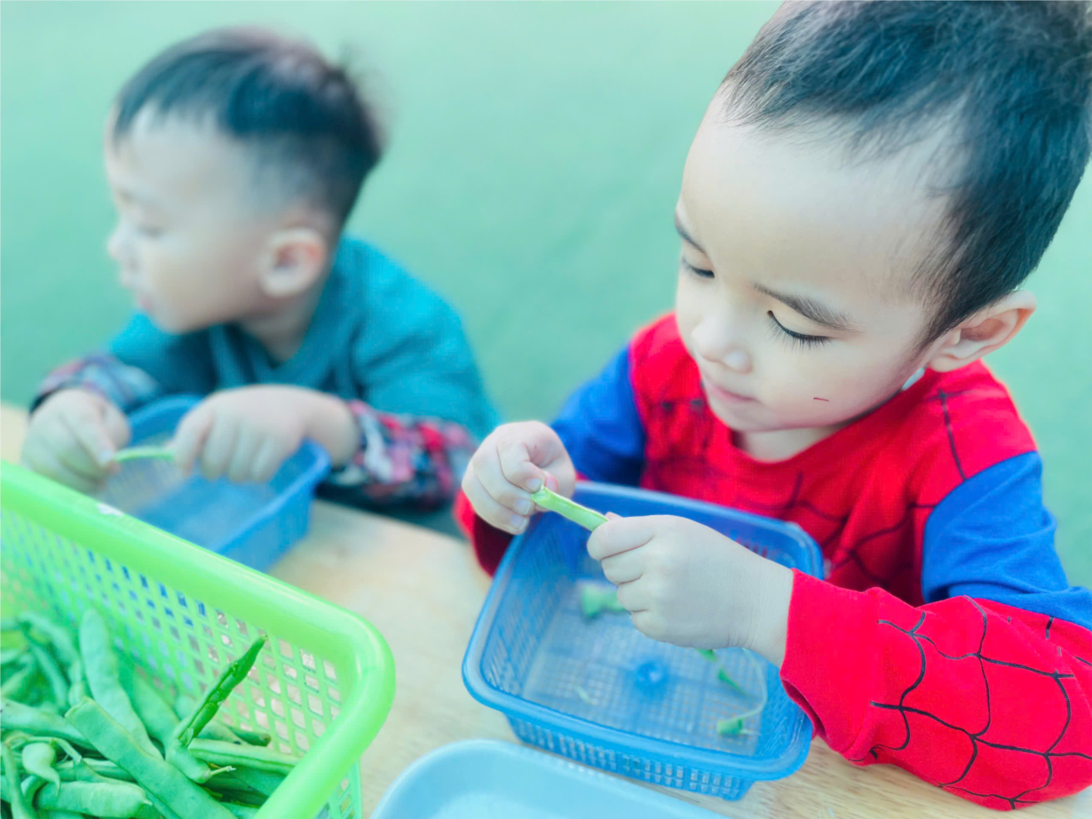 Bé thực hành kỹ năng nhặt đỗ giúp mẹ