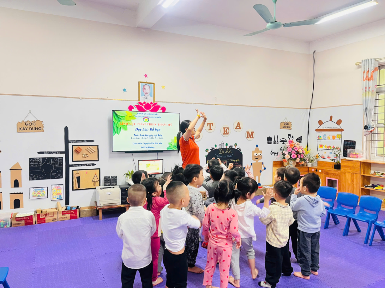 Dạy hát: Đố bạn. Trò chơi: Gà gáy, vịt kêu
