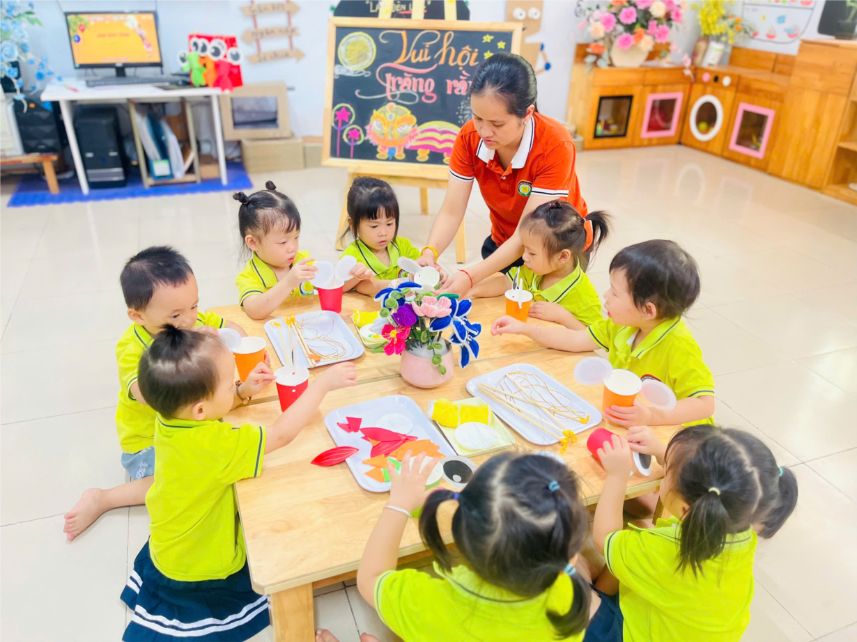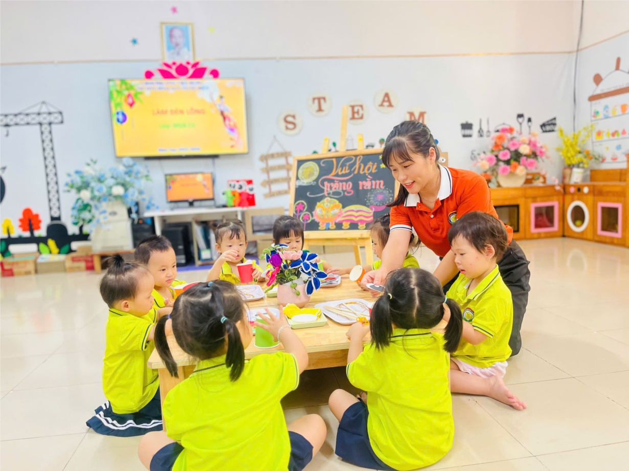 Các bé được hoạt động làm chiếc đèn lồng trung thu