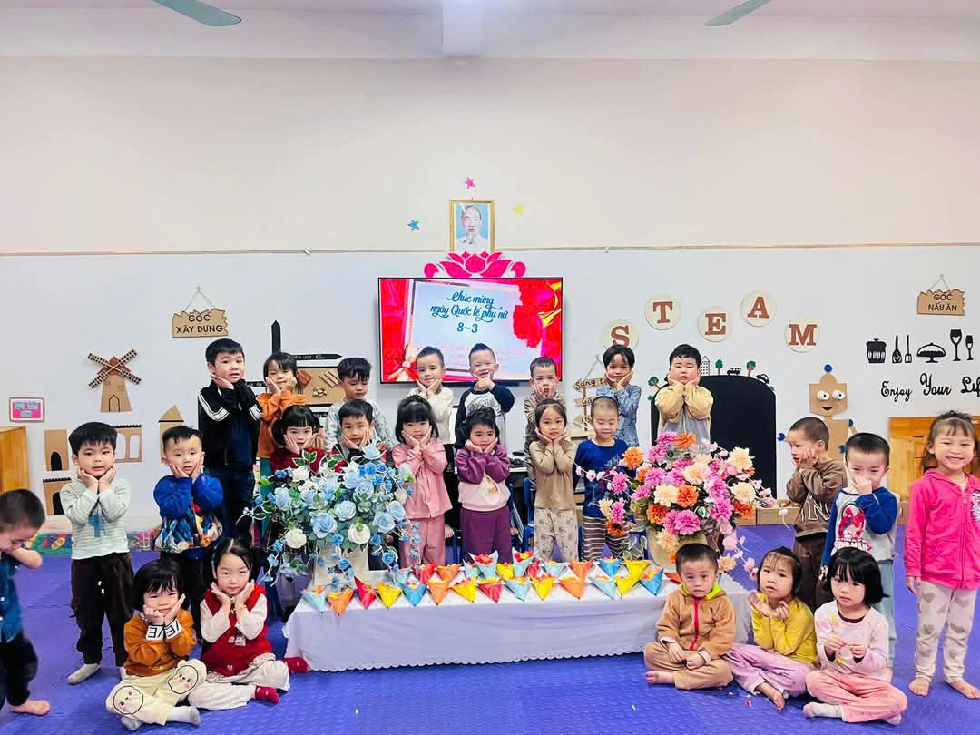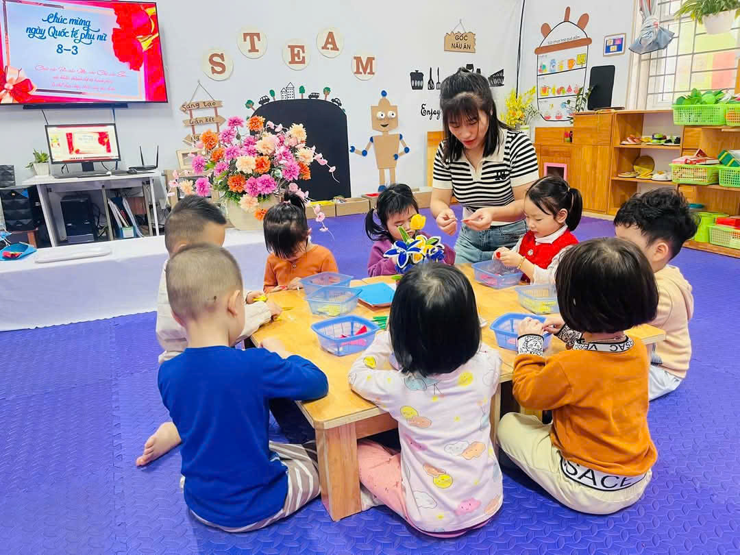 Các bé lớp C3 làm hoa tặng mẹ ngày 8/3