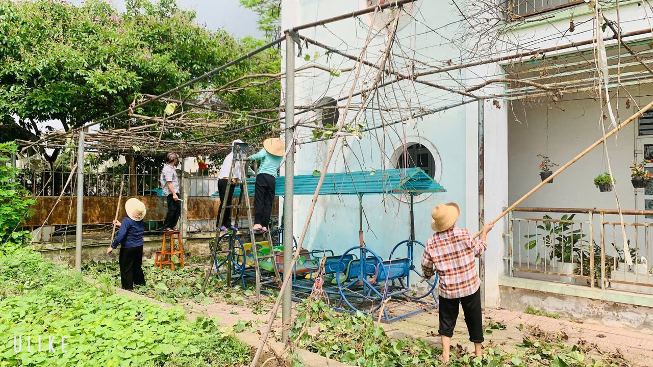 Sau một mùa bội thu với những trái mướp xanh ngon cho trẻ. Để chuẩn bị cho vụ trồng tiếp theo, các đồng chí giáo viên, nhân viên trường Mầm non Giang Biên thực hiện việc rỡ giàn mướp, đồng thời giúp loại bỏ mầm bệnh, sâu bọ có thể gây hại cho vụ trồng tiếp theo. Sau đây là một số hình ảnh: