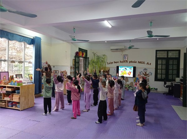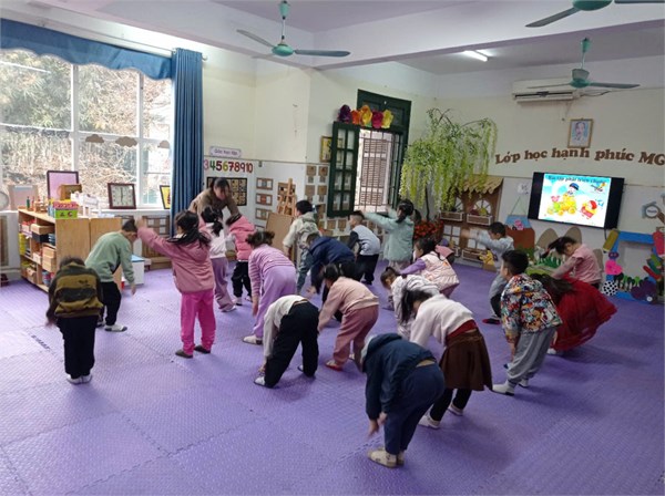 Tập ảnh : Tháng 3: Một số hình ành gời PTVĐ của các bé lớp MGL A1