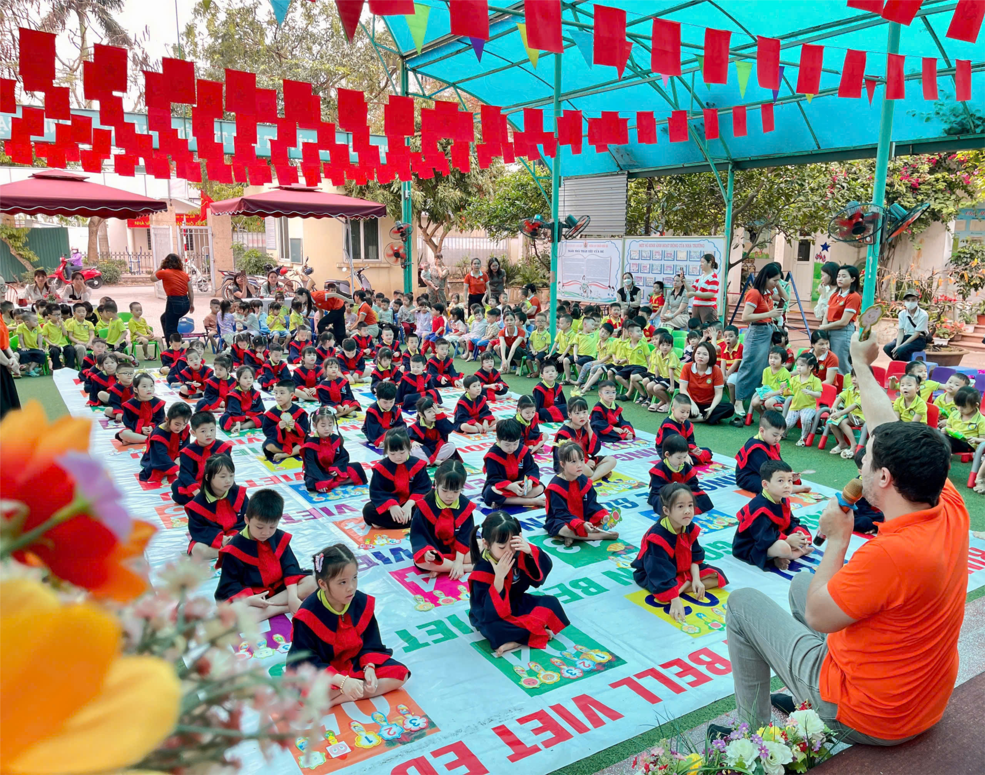 Không khí “nóng” lên từng phút với nhiều câu hỏi đầy thử thách, đòi hỏi sự nhanh nhạy, tư duy và vốn từ phong phú. Cả sân trường như nín thở theo từng câu trả lời, từng lần các bạn nhỏ giơ thẻ đáp án đầy tự tin.